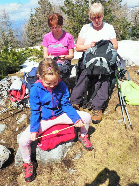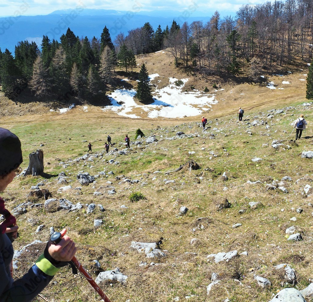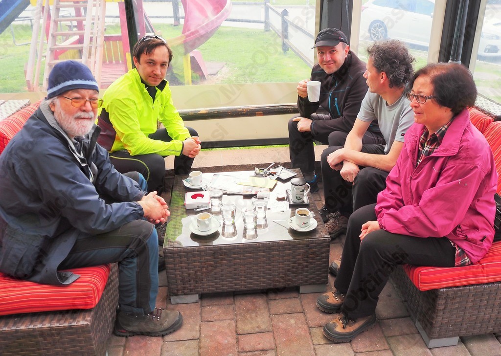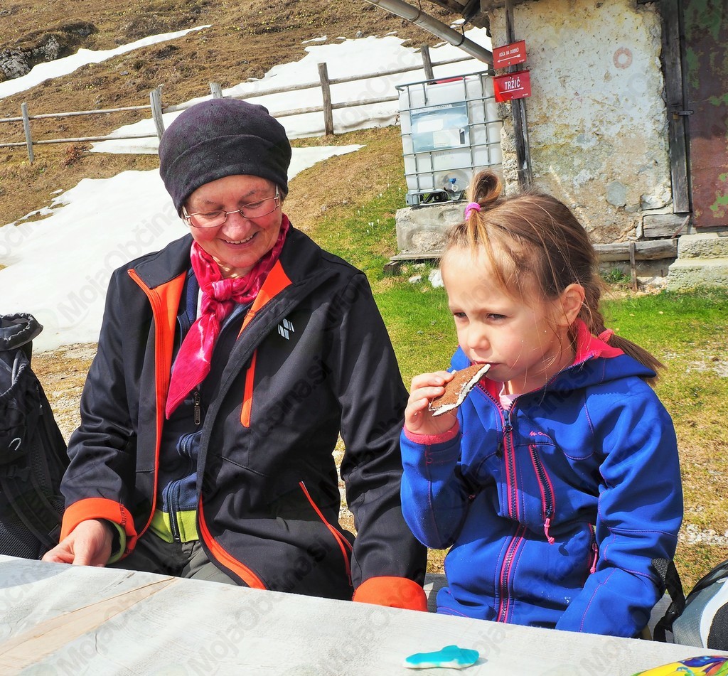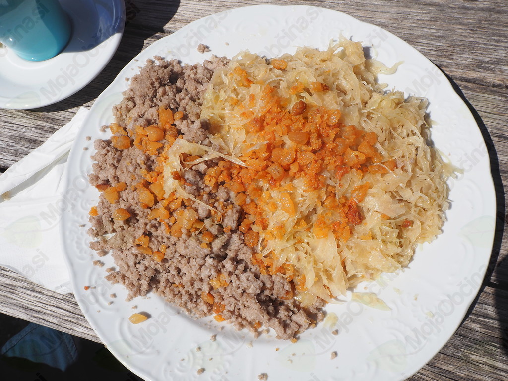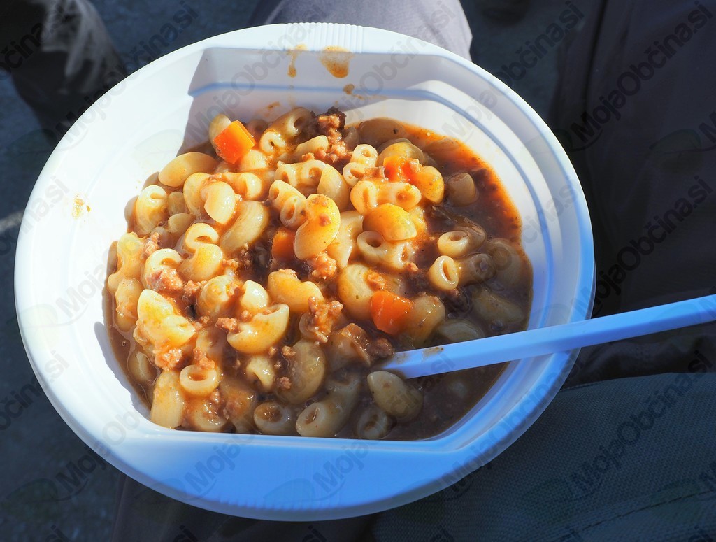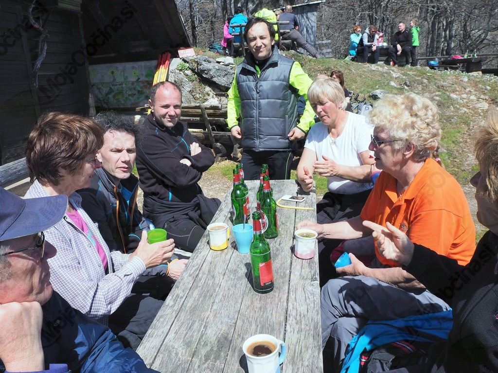 Prijetno utrujeni smo se vrnili popoldne k brunarici, kjer so nam postregli z makaronovim mesom, ki so ga že preje uživali udeleženci delovne in čistilne akcije, ki se je odvijala isti dan. Skupaj smo pokramljali in dogovorili, da gremo skupaj v še večjem številu na Kraški rob.