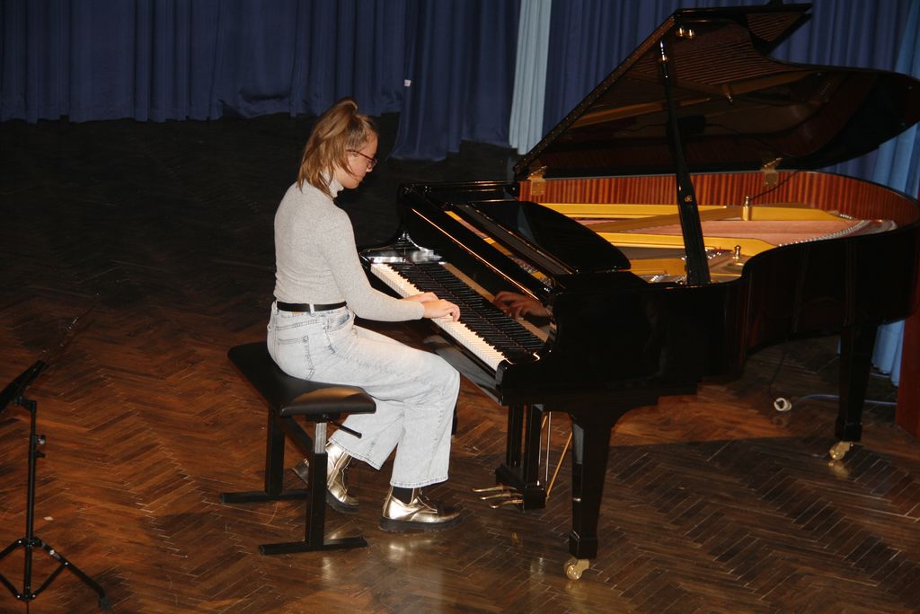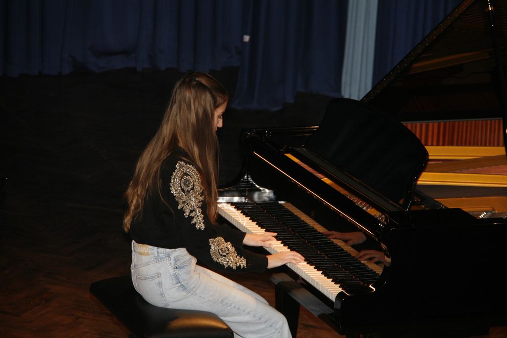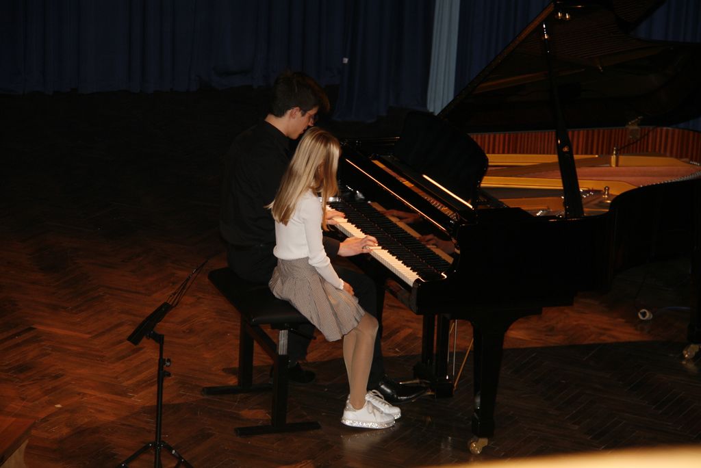 Da nismo prisluhnili le harmoniki so poskrbeli učenci in učenke, ki se spoprijateljujejo z veliko večjim inštrumentom in to je klavir.  Na črno bele tipke klavirja so  tokrat pritiskali  Mija, Klara, Kaja, Evita , Stela, Lan, Val, Anja, Klara B, Patrik, Nejc, Ela, Katja, Valentina Eva ter Žan Rafael, Brina in Ana in nam zaigrali znane in manj znane skladbe.