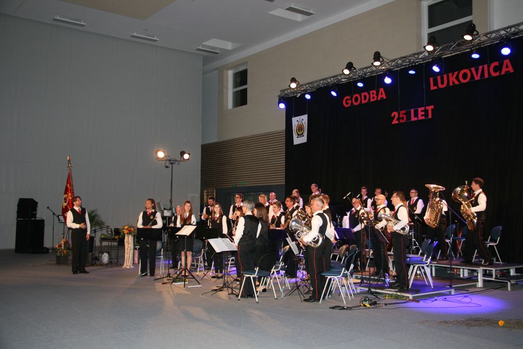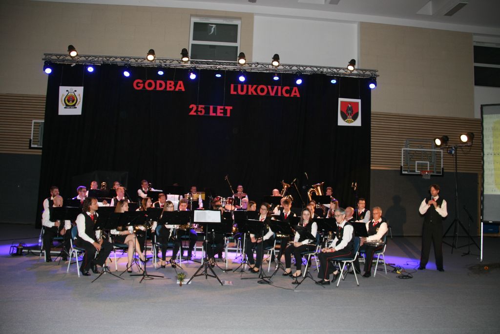 Naša Godba Lukovica je v soboto, 13. maja v Sončni dvorani na Brdu obeležila 25-letnico delovanja in to s koncertom, ki ni bil kar tako. Z igranjem in besedami so nas popeljali čez vsa leta od ustanovitve pa do danes. Začetki segajo v leto 1998 , ko je Kamilo Domitrovič prišel do takratnega župana Anastazija Živka Burje z idejo o ustanovitvi godbe. In ker ni naletel na gluha ušesa ampak je bil župan navdušen nad idejo in je primaknil nekaj sredstev za nakup, sicer starih a še uporabnih inštrumentov, se je začela pisati zgodovina Godbe. Ob pomoči učitelja trobente na oddelku Glasbene šole Domžale na Brdu Jureta Močilnikarja ter še nekaterih glasbenih navdušencev iz Črnega grabna, je tako iz ideje prišla v realizacijo ustanovitev pihalnega orkestra v občini. Potrebno je bilo, ne samo znanje in volja, ampak tudi vztrajnost, razumevanje, dogovarjanje in upoštevanje vseh akterjev, da je godba zrasla in je takšna kot je danes. Kar nekaj kapelnikov se je v teh letih zamenjalo in vsak od njih je pustil svojevrsten pečat v godbi, vsem pa je bil cilj, da je godba napreduje, da se člani izobražujejo in da postajajo prepoznavni doma in zunaj meja občine in države. Ob tem ne moremo mimo interne šole, ki so jo izvajali in v kateri je veliko vlogo odigral takratni kapelnik Jure Močilnikar. Slavnostnega koncerta so se udeležili pomembni predstavniki občine Lukovica županja mag. Olga Vrankar, podžupan Vincenc Dragar, občinski svetniki, predsedniki društev in mnogi drugi. Uvodni in zaključni del programa je pripadel Leonu Andrejki, med posameznimi skladbami pa smo prisluhnili posameznim dolgoletnim članom godbe, ki so povedali nam povedali svoje misli in občutke povezane z godbo. Tako so nam zgodbe povedali Blaž Andrejka, Leon Andrejka, Brigita Pavlin, Božo Stupica, Kamilo Domitrovič, Vili Gošte in drugi. Le Rok Capuder je na koncu, ob igranju godbe, zgodbo o godbi napisal kar na pisalni stroj. In po zaključku skladbe jo je glasno prebral Leon Andrejka. Za svoje pisanje je bil Rok nagrajen z močnim aplavzom. Zanimivost te zgodbe je, da v njej nastopajo tudi po tri generacije iz ene družine, česar si v godbi želijo tudi v prihodnje. Slavljenki je spregovorila tudi županja mag. Olge Vrankar, ki je dejala, da ji je v čast in veselje, da je lahko prisotna na jubilejnem koncertu Godbe Lukovica. »Vsaka obletnica govori zgodbo o uspehu, podprto s prijateljstvom, združevanjem generacij, skupnimi interesi, strastjo do glasbe in skupnim ciljem. Zgodbo, ki ste jo začeli pisati kmalu po ustanovitvi Občine Lukovica upam, da boste nadaljevali še naslednjih 50 let in nas s svojim igranjem razveseljevali, kot ste nas vedno do sedaj. Poudariti je treba, da nobeden večji dogodek v občini ne mine brez nastopa Godbe Lukovica in ravno zato je postala to naša godba«. In ob čestitki za praznik je obljubila še naprej vso podporo in naklonjenost tudi s strani občine. Za zaključek je nekaj besed spregovoril tudi predsednik godbe Aleksander Oražem. Za konec koncerta smo prisluhnili še Rokovnjaški himni, za katero je tekst napisal godbenik Kamilo Domitrovič. Čestitke slavljencem so izrekli tudi predstavniki godb iz Mengša in Moravč. Slavljencem želimo, da še naprej pišejo svoje zgodbe mi pa jim bomo radi prisluhnili že na naslednjem nastopu .