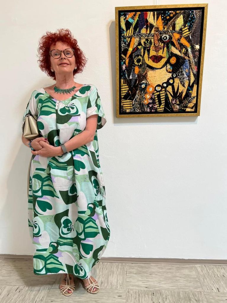 Njeno delo je že po samem izboru  tehnike nekaj posebnega, namreč ustvarila je kolaž iz tekstila, za katerega je uporabila različne končke blaga, katere je prišila na večji kos blaga.   V tovrstni tehniki likovniki ne ustvarjajo prav pogosto, zato je ta še toliko bolj zanimiva. Njen kolaž je izdelan v velikosti 50 x 60 cm in ima naslov Čutno". Tudi selektorji so v tem delu očitno začutili nekaj več, zato so njeno delo uvrstili na državno tematsko razstavo.