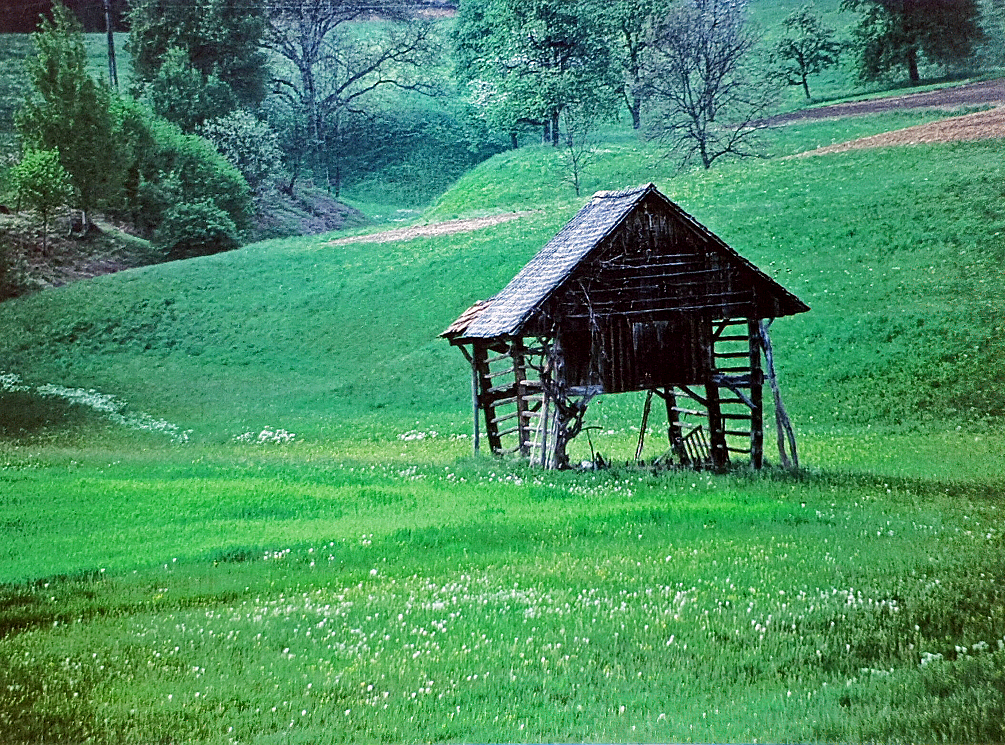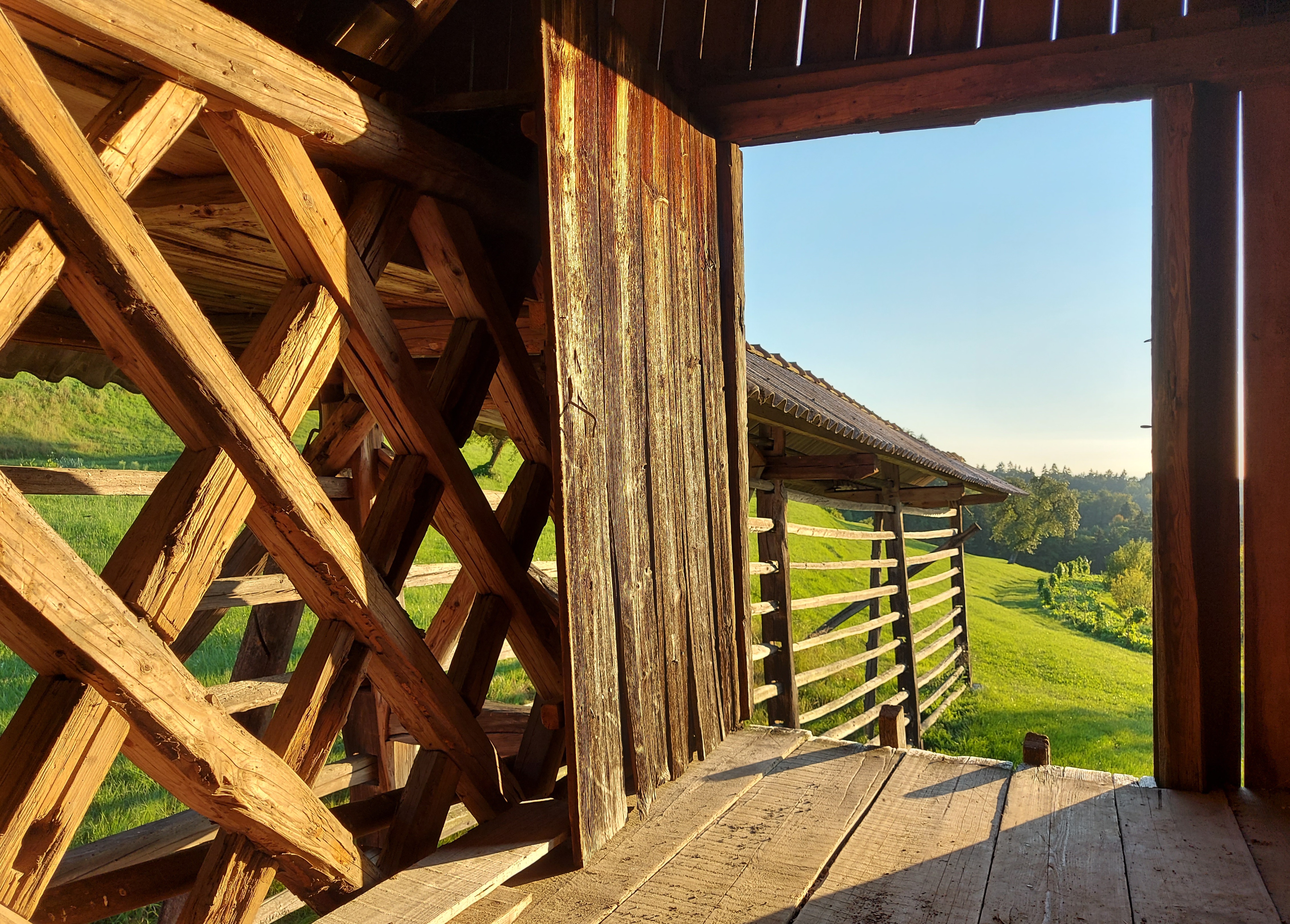 »Tako se njiva dvakrat na leto preorje, to se namreč v drugih deželah, to je v sosednjih, ne dogaja. Tudi seno se na travnikih kosi dvakrat na leto. V ta namen so povsod po deželi naredili tako imenovane kozolce, to je ogredje. Sem se spravi požeto žito, da se posuši, kajti, da bi se sušilo na polju, kakor je navada v drugih deželah, tega ne dopušča čas, zlasti ker se tu polje, brž ko je požeto, znova preorje in poseje, kakor je bilo prej omenjeno.«