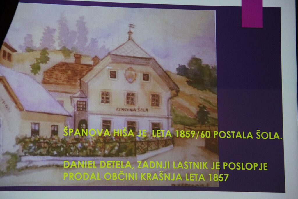 Tako mo tokrat poleg zgodovine družine Španove domačije izvedeli veliko tudi o utripu in bolj ali manj znanih osebah iz Krašnje, ki je imela duh na katerega smo lahko ponosni. Od številnih letnic in podatkov se človeku zvrti v glavi in vendar so kar nekateri obiskovalci tokratnega predavanja hodili radi v Španovo hišo. No, če so ravno radi hodili podatki ne navajajo, so pa morali, kajti kasneje je zgradba postala šola. Do leta 1976 so tako imeli pouk v tej več kot 350 let stari stavbi, ki ni bila več primerna za šolo. 6. maja 1976 je močnejši potres povzročil večje razpoke na šolskem poslopju. V spodnji učilnici smo strop podprli s tramovi. Po ogledu strokovnjaka iz Zavoda za varstvo pri delu so inšpekcijske službe Občine Domžale so prepovedali pouk v tej stavbi. Štefan Levičnik se je z družino prav v tistem času preselil v novo hišo in tako je njegova izpraznjena hiša v prvem nadstropju postala začasna šola in ponovno se je pisalo novo poglavje zgodovine šolstva v Krašnji.