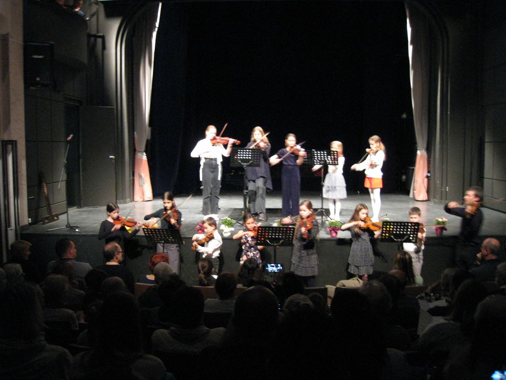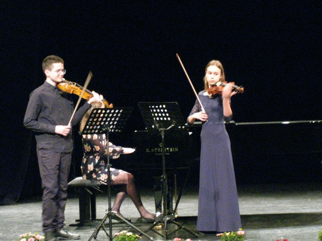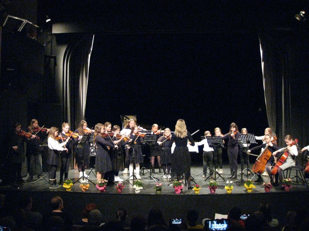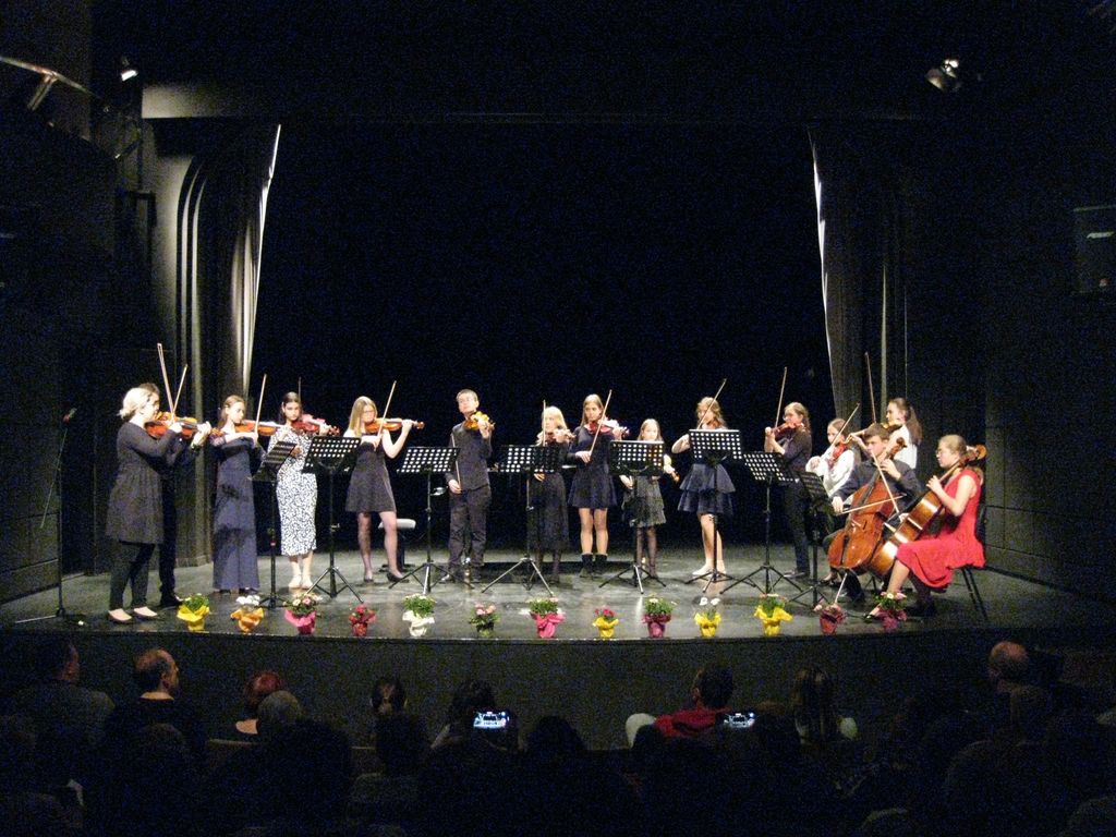 Yana in Vita sta nas z igranjem na violino navdušili s primorsko Dopaši in tržaško Sto ljudi. Iris je ob spremljavi Neže Zupan na klavirju zaigrala na violino Žoga ne uboga. Avguštin je z violončelom na ti in Beethovnov Kontradance bi nam lahko zaigral še enkrat. Sarabanda je naslov pesmi, ki jo je na violina zaigrala Kaja napisal pa veliki Tartini. Punčka sanja so zaigrali Maja, Dora, Iviana, Lovro, Maša, Mia, in Jaka, učenci 1. razreda violine. Brino je na kitaro spremljala Katarina, da sta lahko zaigrali Sonatino za violino in kitaro. Na poti sicer ni bila Ana ampak je to naslov pesmi, ki jo je zaigrala na violino in jo je napisal Kabelevski. Če je Sara zaigrala Andantino avtorja Hačaturjana, so Nola, Ronja, Lučka, Luka, Marija, Iviana Brina, Julija, Lavra Kaja, Jernej in Doroteja na violino zaigrali Koračnico. Ja kar prav ste prebrali koračnico in s slednjo so prikorakali na oder in pod oder ter zaigrali v veselja tudi avtorice Neže Zupan. Malo več prostora sta tokrat potrebovala Jaka in Andrej saj sta na kontrabas zaigrala Marinovičev Boogie, medtem, ko je Katarina za violončelo potrebovala manj prostora, da smo lahko prisluhnili Rubinšteinovi Melodiji. Andrej in Ajda sta nas popeljala v višave s Šostakovičevim Preludijem. Navdušenja kar ni bilo konca saj sta nadaljevala Julija in Nola z Gavota, ter Karolina in Ajda z Šostakovičevim Valčkom. Igračke, zanimiv naslov pesmi, pod katero se je podpisal Tomaž Habe zaigrale pa so jo na violino Gaja, Ajda, Karolina, Andrej, Pija, Julija, Ema, Neža, Larisa, Sofija in Aljaž. Andrej se nam je predstavil še z Dvorakovo Romantično skladbo, ki jo je zaigral na violino in prav tako tudi Gaja je Juvanovo Seviljana. Med tem, je Aljaž vzel v roke violončelo in zaigral Mendelssohnovo pesem Brez besed.
