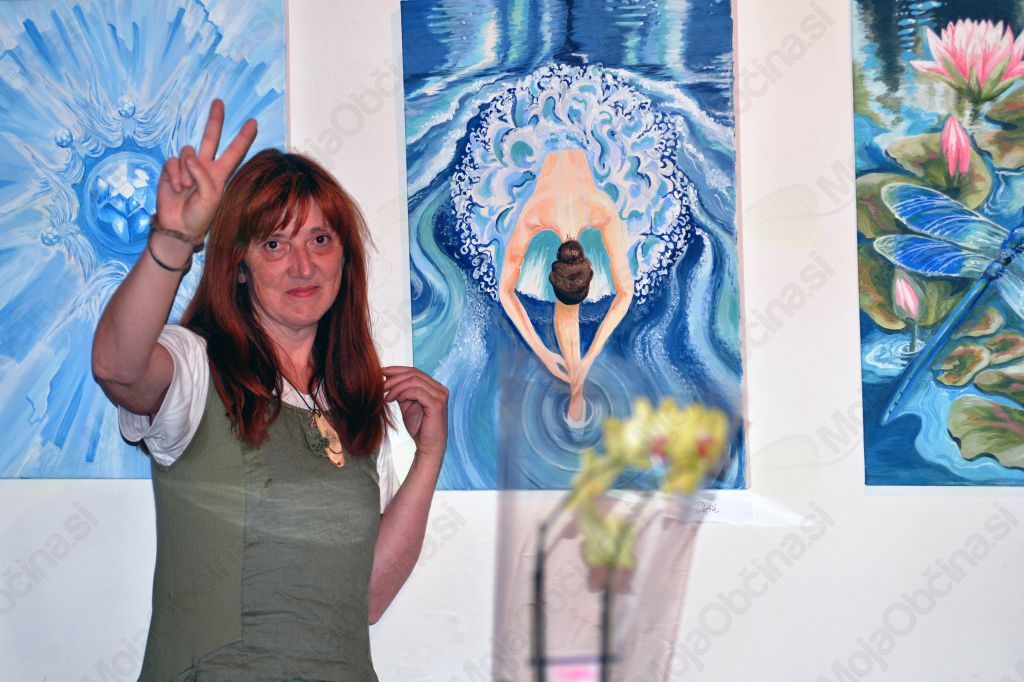 V resnici gre za naslov slikarske razstave – Ogenj in Voda, pod slike pa se je podpisala umetnica Metka Jarc, ki pa je ob tej priložnosti praznovala tudi okrogli rojstni dan.