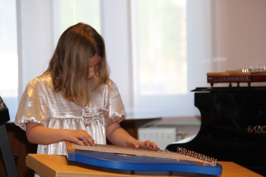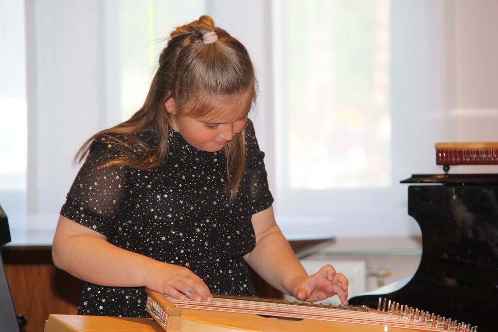 Eli, učenka tretjega razreda, je zaigrala So ptički se ženili, kar lepo sovpada s pomladnim časom. Bernardka, učenka drugega razreda, je najprej zaigrala Je bela cesta uglajena, nato pa še Mamica je kakor zarja. Tudi Emil Vanja je učenec drugega razreda citer, vendar je pogumno zaigral Viseejev Menuet iz Suite št. 10 v g-molu in skladbo Tigerorck I skupine The Beatles ter dokazal, da so citre vsestranski inštrument.