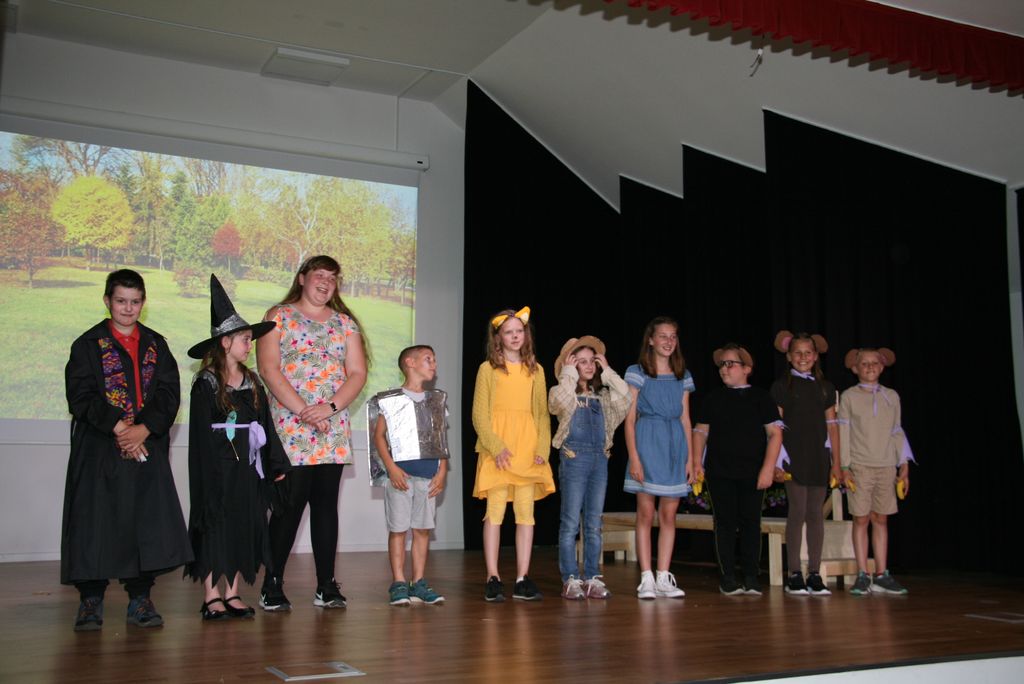 Prav gotovo ni otroka, niti starejšega, ki ne bi poznal dežele Oz, saj smo si enkratno filmsko verzijo režiserja Victorja Fleminga iz leta 1939, ogledali verjetno že večkrat. Poznana je tudi zaradi pesmi Over the Rainbow, kar v prevodu pomeni Čez mavrico. Ob dramsko glasbeni uprizoritvi smo se sprehodili čez različne dele dežele Oz in ob tem burili domišljijo mladim in starim. Zgodba nam prikaže številne vrednote kot so prijateljstvo, razmišljanje, sodelovanje in pogum.
