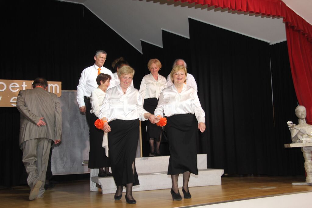 Sobota, dan pred dnevom žena, je bila kot nalašč za prijeten kulturni večer. Mnogi so svoje drage ali mame popeljali v Društveni dom v Krašnji, kjer smo preživeli skoraj dve uri smeha ob gledališki komediji Vaja zbora avtorja Vinka Möderndorferja.