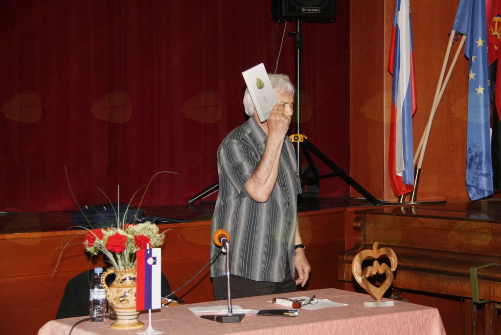 Domovina je ena nam vsem dodeljena je zapisal Oton Zupančič leta 1949 in o domovini je tekla beseda na tokratni predstavitvi knjige Toneta Kuntnerja Zamrznjena Pomlad. A ne le beseda, tudi pesem je imela tokrat pridih domovinske tematike, tematike, ki jo vse premalokrat poudarjamo in se o njej vse premalo tudi pogovarjamo. V četrtek 24. aprila je v dvorani Antona Martina Slomška pisatelj, igralec in resnični patriot, ki se radosti in joče ob vzponih in padcih slovenske zgodovine , ki mu je mar za naš obstoj in, ki v svojih pesmih budi novo upanje Tone Kuntner predstavil svojo novo knjigo Zamrznjena Pomlad. Človek, ki vse življenje vztraja pri kmečkih koreninah in, ki piše slovensko pomlad z veliko začetnico. In to le dan za dnem, ki je posvečen promociji branja, založništva in zaščiti avtorskih pravic ter intelektualne lastnine, dnevu knjige. Dan knjige 23. april namreč želi spodbuditi ljudi, še posebej mladino, da odkrije užitke branja in pridobi spoštovanje do prispevkov teh, ki so s svojimi deli pripomogli k družbenemu in kulturnemu napredku človeštva. Svetovni dan knjige, ki ga je razglasil Unesco leta 1995 praznujejo pisatelji, ilustratorji, knjižničarji in vsi, ki imajo radi knjige. Mi pa smo se zbrali v kulturnem domu Antona Martina Slomška, da prisluhnemo avtorju knjige o namenu, pomenu in vsebini Zamrznjene Pomladi. Začeli smo z pesmijo, prisluhnili župniku Pavletu Okolišu, ki je vsem zbranim zaželel naj nas besede Toneta Kuntnerja nagovorijo globoko in domače , nas , ki cenimo svoje korenine in imamo domovino Slovenijo radi. Obenem se je zahvalil vsem, ki so pripomogli , da je do tega večera prišlo. Nato smo prisluhnili Mojci Stoschitzky, ki je povezovala tokratno predstavitev. O domovini o ljubezni do nje in o Cankarju je tokrat spregovoril gost večera Tone Kuntner in nam povedal nekaj svojih pesmi, tako iz knjige Zamrznjena Pomlad kakor prejšnjih. Veliko o knjigi povedo tudi besede Ljudmile Novak, ki jo z pisateljem veže prijateljstvo in obiskovanje iste osnovne šole. Vsako leto izumre na svetu veliko jezikov in čudež je, da se je slovenščina ohranila, a nikjer ni rečeno da se bo. Delati moramo , da se bo ohranila tako slovenščina kot Slovenija, je še poudarila in svoj nagovor zaključila z besedami Toneta Kuntnerja:" Hvala ker smo prijatelji"! In tako je minil prijeten kulturni večer, prežet z domovinsko zavestjo, ravno pravšnji pred bližajočimi se prazniki.