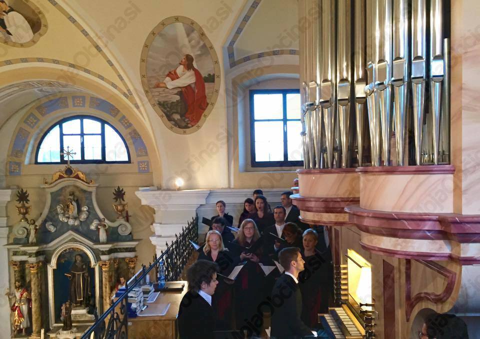 Dirigentka zbora gospa Martina Batič je za petkov večer pripravila pester in zanimiv program, ki je zaokrožil umetniško vrhunski večer. V prvem delu je zbor zapel s pevskega kora ob spremljavi naših orgel. Ker letos praznujemo že 10 let od njihove postavitve, je prav, da smo jih še posebej izpostavili. V drugem delu koncerta je zbor spredaj pred oltarjem predstavil še slovenske umetne in ljudske pesmi s poudarkom na skladatelju Mariju Kogoju (letos se spominjamo 50 letnice njegove smrti) ter skladateljev Antona Lajovica in Oskarja Deva, ki sta kot sodnika službovala na Brdu in tudi kulturno delovala naših krajih.