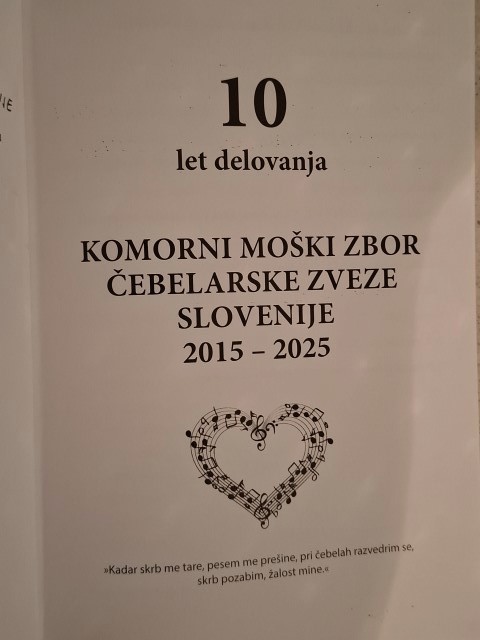 Naj čebelarska pesem še dolgo odmeva tudi pri fantih Komornega zbora ČZS. Zbornik bo čez čas na ogled tudi v digitalni obliki kot e-Bilten, založnik zbornika je Čebelarska zveza Slovenije, zanjo Boštjan Noč, ideja in zasnova Tone Tomec, uredniški odbor Tone Krivec, Andrej Selan, Janez Nagode, zbral in uredil Andrej Selan, fotografije Drago Juteršek, člani zbora, arhiv ČZS splet in ostali mediji, jezikovni pregled Katja Bizilj, grafična obdelava Caballus Mojca Zakrajšek s.p,. tisk Para d.o.o.