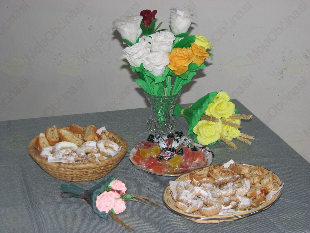 Kar lepo število obiskovalcev se je zbralo ob otvoritvi prireditve v lepo obnovljenih pritličnih prostorih častitljive hiše. Pod kamnitimi oboki so predstavnice obeh društev predstavile njihovo delovanje in želje ter načrte za prihodnost. Za popestritev je Marija Radkovič iz društva Jesenski cvet prebrala še nekaj zanimivih odlomkov iz del različnih avtorjev. Seveda ni manjkal tudi prigrizek v obliki privlačnih sladic, ki so šle še posebno v slast ob ogledovanju razstavljenih mojstrovin, katere izdelujejo upokojenci in drugi starejši člani obeh društev. Vse do 17. ure so bile tako na ogled papirnate rože, različne pletenine, izdelki iz slame, ogrlice in še kaj bi se našlo.