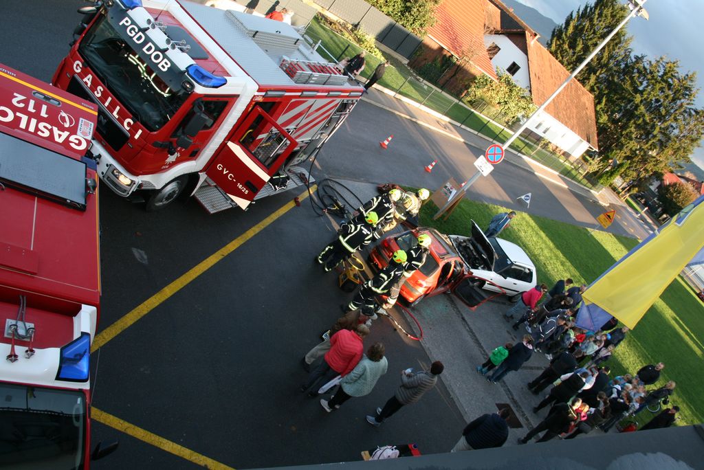 V petek 27. oktobra se je na cesti 7. avgusta v Dobu pri Domžalah ob 16. uri in 31 minut zgodila prometna nesreča v kateri sta bila udeležena voznica in mlajši voznik, ki je vozil vozilo brez izpita. Voznica je pravilno peljala po svojem voznem pasu iz smeri centra Doba proti glavni cesti, ko je nasproti s preveliko hitrostjo pripeljal voznik z vozilom za katerega ni imel ne dovoljenja za vožnjo ne izpita. Zaradi neizkušenosti se trčenju ni mogel izogniti. Ob trku se je vozilo voznice vnelo. Ker je bilo udeleženih več vozil so k reševanju poklicali tako gasilce PGD Dob kot CZR Domžale. Hitremu posredovanju gre zahvala, da ni bilo hujših poškodb in, da sta ponesrečenca po ogledu nesreče s strani policije odšla v domačo oskrbo.