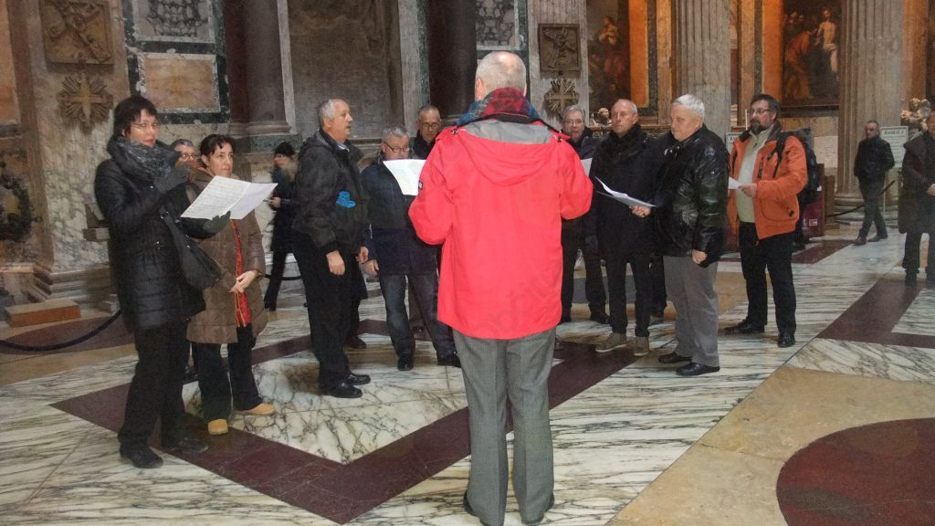 Zbor je naslednji dan pel tudi v znamenitem starorimskem Panteonu, ki je sedaj krščanska cerkev in koder je pokopan tudi slikar Rafael Santi katerega izjemne poslikave (Atenska šola) smo dan poprej videli v Vatikanskih muzejih. V teh muzejih (s sedmimi kilometri hodnikov) smo si še posebej pozorno ogledali etruščansko zbirko ter zbirko umetnosti XX. stoletja in seveda slavno Sikstinsko kapelo. Po ogledu veličastnih galerij smo šli na trg pred baziliko svetega Petra in v živo gledali papeža, ko je pozdravil zbrano množico z nedeljskim »Angelusom«. Zatem smo si seveda ogledali še samo baziliko in grobnico papeža Janeza Pavla II ter prelepi Michelangelov kip »pieta«.