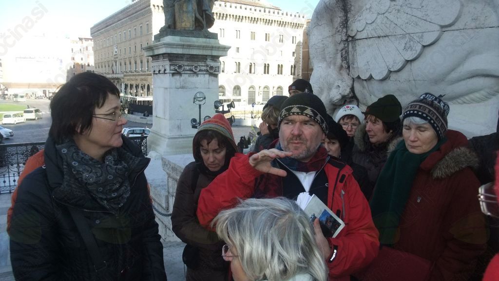 Prebivali smo v Sloveniku, slovenskem papeškem zavodu, kjer smo tudi peli pri maši v kapeli. Od tod je lepa povezava z avtobusom in z metrojem do centra mesta, koder smo si ogledali večino ključnih znamenitosti: angelski grad, trg Navona, palačo predsednika republike, španske stopnice, parlament, vodnjak Fontana di Trevi (žal ga ravno prenavljajo), mogočen spomenik neznanemu junaku (domačini ga imenujejo kar »poročna torta« ali »pisalni stroj«), kip cesarja Marka Avrelija, Trajanov steber, starorimski Forum (zelo lepo in temeljito razlago foruma, oz. ustroja starega Rima, nam je iz sijajne razgledne točke podal prevajalec in filozof Jan Ciglenečki, ki smo ga imeli s seboj) , veličastni Kolosej, Lateransko baziliko, Campo dei Fiori (koder so sežgali Giordana Bruna), otok na Tiberi, pa še nekatere cerkve in trge in spomenike… Večni Rim je mogočen in čudovit, a je bil povsem obvladljiv za gibko druščino (četudi nas je bilo za dobre tri ducate duš). Seveda pa smo se na poti ustavili tudi v glasbenem mestu Arezzo in nazaj grede v ljubkem Orvietu s prekrasno katedralo.