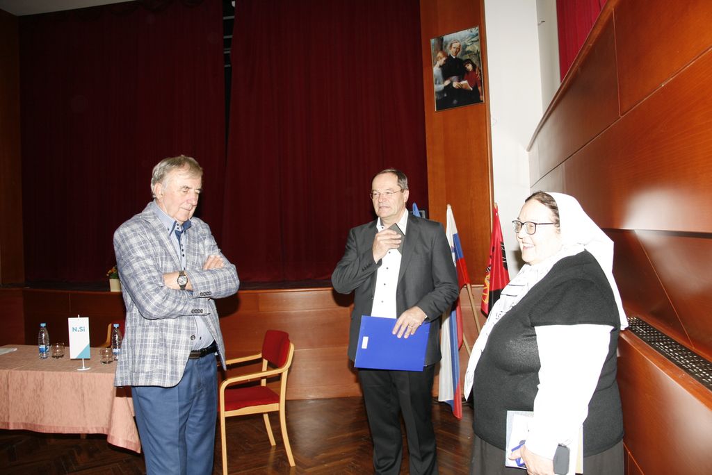 Pod geslom Življenje je sveto in nenadomestljivo sta na pogovorni večer v Kulturni dom Antona Martina Slomška v Šentvid vabila v petek 10. nov.202. Občinski odbor Nove Slovenije in Župnija Brdo. Najprej sta zbrane pozdravila predsednica OO NSi Mojca Stoschitzky in domači župnik Bernard Rožman nato je pogovor o evtanaziji oziroma o predlogu Zakona o pomoči pri prostovoljnem končanju življenja vodil Anton Meden, kot gosta pa sta sodelovala s. Emanuela Žerdin (Ljubhospic) in prof. dr. Pavel Poredoš, zdravnik, predsednik Slovenske medicinske akademije in član Komisije RS za medicinsko etiko. Kot vemo, je predlog zakona o pomoči pri prostovoljnem končanju življenja v zakonodajni postopek vložilo združenje Srebrna nit, ki je za tak postopek zbralo dovolj podpisov volivk in volivcev. Osebno menim, da so podpise prispevali predvsem tisti, ki so danes zdravi in (še) ne razmišljajo o trenutku slovesa. Čeprav trdijo, da z zakonom le želijo dati, neozdravljivo bolnim, ki trpijo neznosne bolečine, možnost dostojanstvene smrti, ki bo pravno urejena, zagotavljala družbeni nadzor in varnost postopka pred zlorabami, je vse skupaj zelo vprašljivo. Da je res tako, nam je v pogovoru najprej razjasnil prof. dr. Pavel Poredoš, ki je poudaril, da zdravniška zbornica nasprotuje zakonu, saj zdravnike zavezuje Hipokratova prisega. Ta se je sicer z leti posodabljala in pravi :"V trenutku, ko stopam v zdravniški poklic, svečano obljubljam,da bom svoje življenje postavil v službo humanosti; da bom do svojih učiteljev ohranil vso dolžno hvaležnost in spoštovanje; da bom svoj poklic opravljal vestno in dostojanstveno; najpomembnejša mi bo skrb za zdravje mojega pacienta; spoštoval bom skrivnosti, ki mi jih je zaupal, tudi po njegovi smrti; z vsemi svojimi močmi bom ohranjal čast in plemenite tradicije zdravniškega poklica; moji kolegi mi bodo bratje in sestre; pri izvajanju svoje dolžnosti do bolnika name ne bodo vplivale nobene od naštetih okoliščin: starost, bolezen, nemoč, vera, etnično poreklo, nacionalnost, spol, politična pripadnost, rasa, seksualna usmerjenost, razredna pripadnost ali katerakoli druga osebna okoliščina; absolutno bom spoštoval človeško življenje; niti pod vplivom grožnje ne bom dopustil, da se izkoristi moje medicinsko znanje z namenom kršenja človekovih pravic in svoboščin. To obljubljam svečano, svobodno, sklicujoč se na svojo čast". Nato pa je spregovoril tudi o težavah s katerimi se spopadajo v državah, kjer je evtanazija že uzakonjena. Pogled v statistiko storjenih evtanazij je zastrašujoč, saj jih je prav v času pred dopusti največ. Ob tem se velja zamisliti - je človek res tako malo vreden? In ko smo že pri vrednotenju, naj izpostavimo, da so ene izmed podpornikov evtanazije tudi zavarovalnice, ki na postopek in čas zdravljenja gledajo s stroškovnega vidika in ne s človeške plati. Ob tem nas skrbi tudi dejstvo, da hoče zakon negirati zdravniško stroko, etiko in človekovo vest. Prof. dr. Pavel Poredoš nam je izpostavil dejstva in dileme z zdravniškega vidika, sestra Emanuela pa je spregovorila na osnovi osebnih izkušenj in doživljanja pri delu z hudo bolnimi in umirajočimi v Ljubhospicu. Zelo nazorno je predstavila drugo možnost, to je paliativno oskrbo, ki pomeni aktivno, celostno obravnavo bolnikov z neozdravljivo boleznijo in podporo njihovim bližnjim. Osnovni namen paliative je izboljšati kakovost življenja bolnika in njihovih bližnjih, pa naj bo to v bolnišnici, v edinem domu Hospic, ali pri bolniku doma. Še vedno največ neozdravljivo bolnih želi zadnje dni preživeti in umreti doma. Vendar njihovi bližnji niso usposobljeni in nimajo dovolj znanja za oskrbo bolnika in se ga zaradi tega bojijo sprejeti domov. Številne primere iz dolgoletne prakse nam je tokrat opisala sestra Emanuela ob katerih smo poslušalci obnemeli in so nam dali povod za razmišljanje. Pretresljivo je, kako zbolijo mlade mamice in prav te najtežje umirajo, saj je materina ljubezen največja jih tudi v najtežjih trenutkih razjeda skrb, kaj bo z njenimi otroki, ko bo odšla. Ob tem nas je sestra opomnila tudi, da je Slovenija družba starejših in da se vsi staramo, zato bo potrebno velik poudarek dati poučevanju zdravstvenih delavcev za paliativno oskrbo. V svoji dolgoletni praksi je videla veliko ljubezni med bolniki in njihovimi svojci, ki iščejo tolažbo tudi v molitvi. Naj nas torej vodi ponižnost, svetost in hvaležnost, za vse kar od starejših prejemamo.