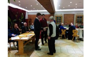 Predsednik društva Mitja Nakrst in predsednik ČZS Boštjan Noč sta podelila priznanja čebelarjem veteranom, in sicer so priznanja prejeli Franc Peterka, Jože Kos in Anton Razpotnik. Posebno zahvalo za opravljanje vloge prapoščaka je prejel Franc Hribar.