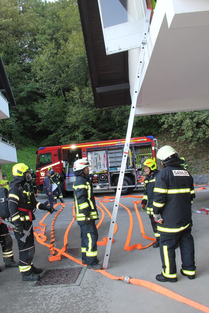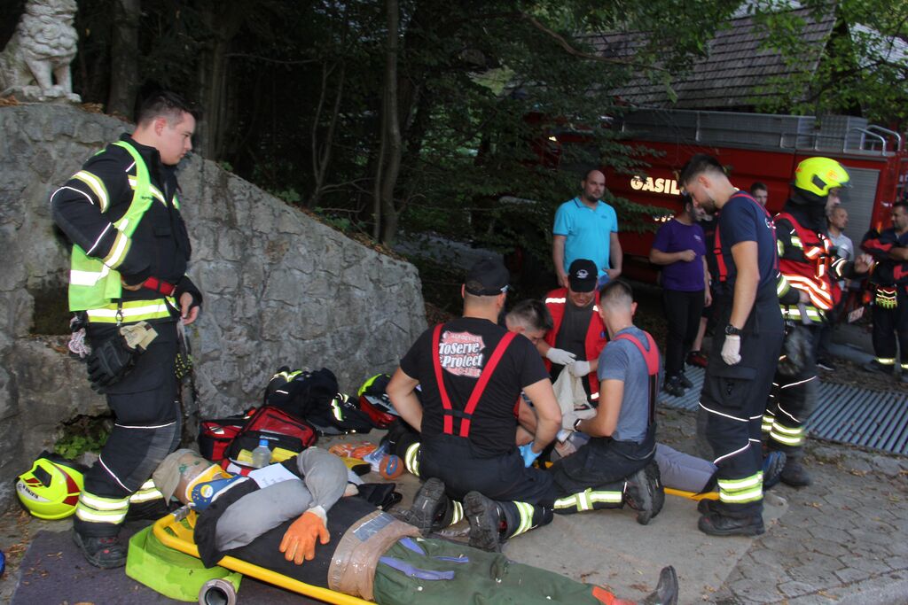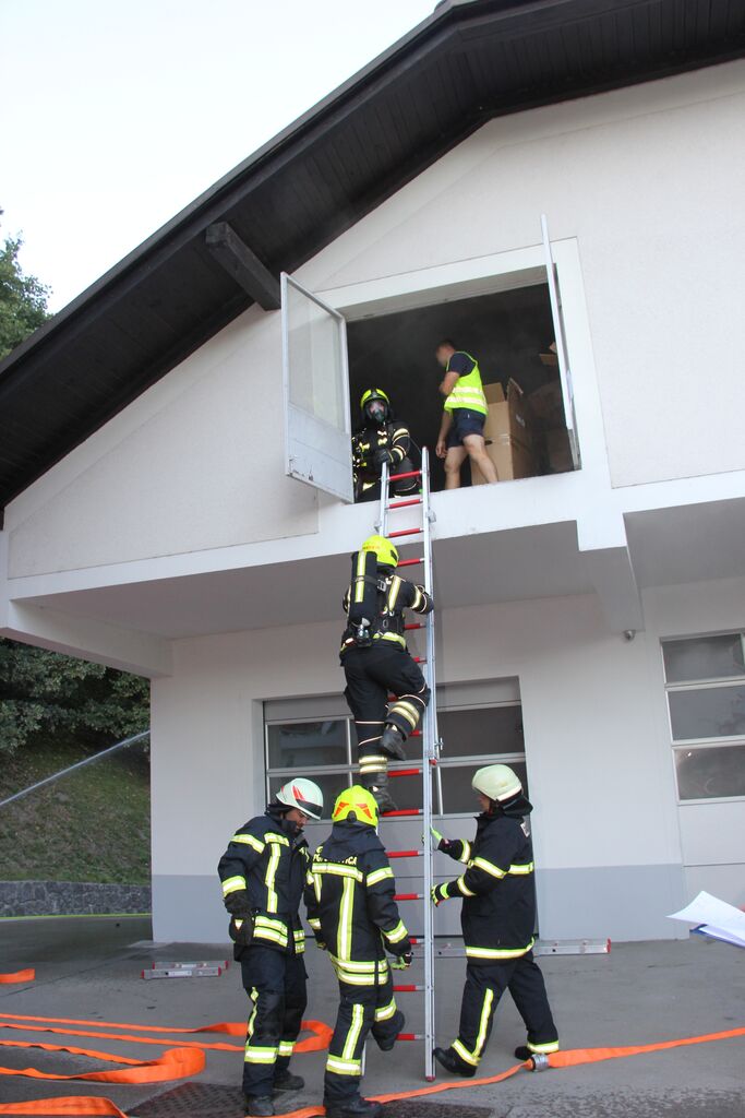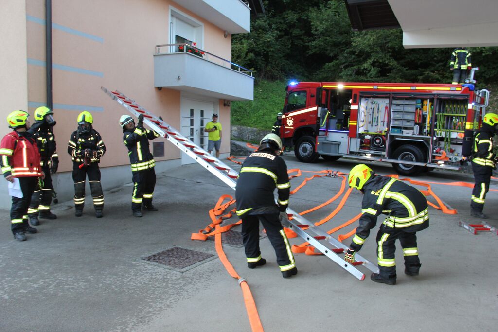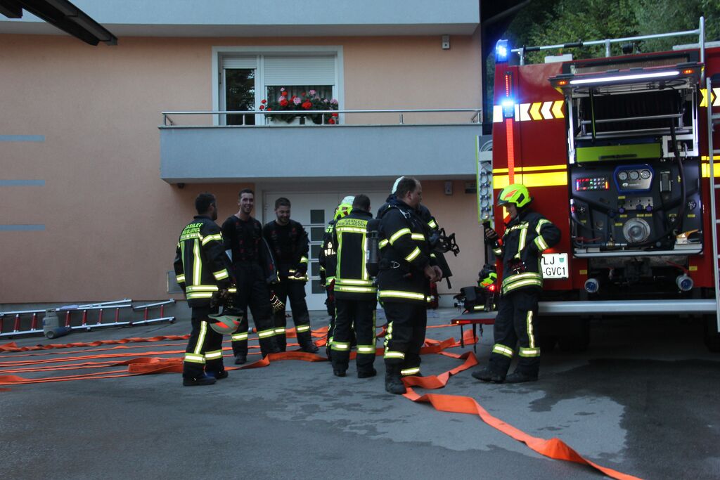 Kar nekaj ponesrečenih je bilo v sami zgradbi, a se zaradi slabe vidljivosti zaradi dima ni dalo ugotoviti kje so, zato so uporabili termo kamero. V poslopje so vstopili gasilci z izolirnimi dihalnimi aparati in nudili pomoč ponesrečencem. Ob pomoči ostalih gasilcev so jih prenesli na zbirno mesto, kjer so jim nudili prvo pomoč. Nekatere poškodovance so morali s specialno tehniko najprej rešiti izpod vozil in jih šele nato odnesti iz prostora. A so poškodovanim že takoj ob prihodu dali dihalni aparat, da so lahko dihali v sobi polni dima. V veliko pomoč so bili tudi ventilatorji, ki so dovajali svež zrak v prostore. Potem, ko so odnesli vse ponesrečene in jim nudili prvo pomoč, so pogasili še najmanjši ogenj in vaja je bila končana.
