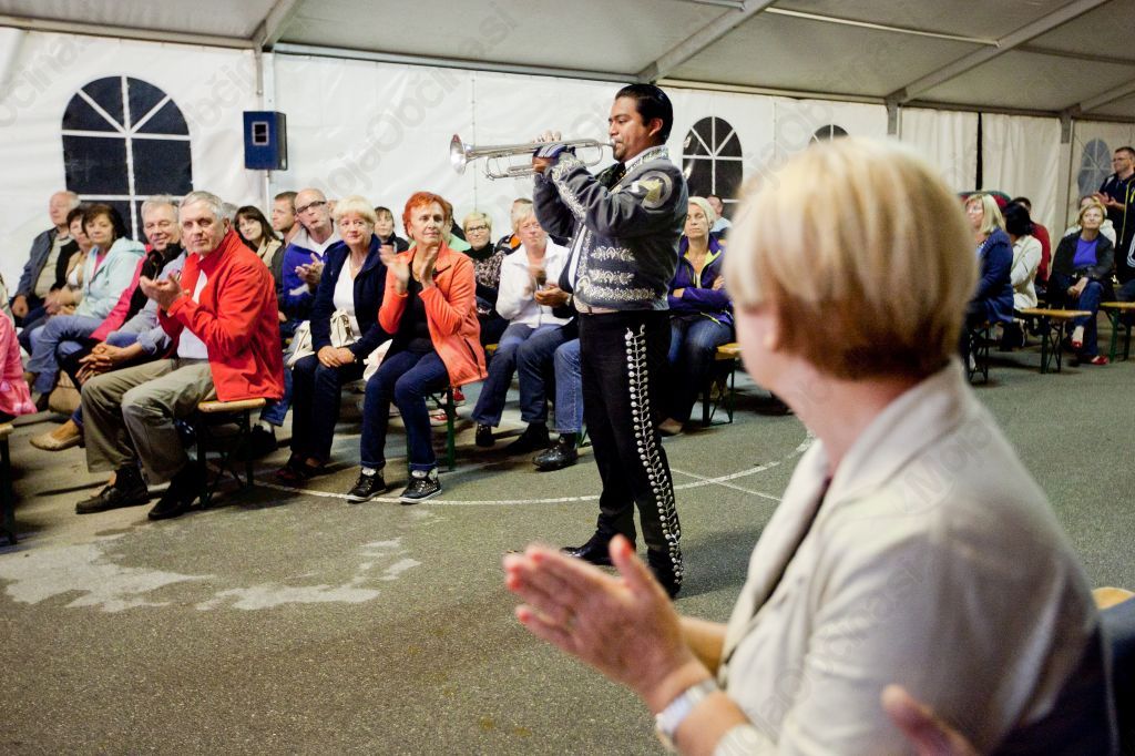 Tako kot je bilo napovedano v vabilo je sedemčlanska zasedba Mariachi International Mexico de Noche v naše kraje prinesla pravi duh in temperament latinske Amerike. Romantični podokničarji, kot jim pravijo nekateri, so dodobra ogreli lepo število obiskovalcev, ki so lahko ob glasbi spoznali tudi kulturo krajev od koder so prišli tokratni gostje. Kot je razložil Armando Morales Lira, Mehičan, ki že več kot deset let biva v Sloveniji, Mariachi ni le glasba ampak prikaz kulturne revolucije, izražen skozi skupino umetnikov, glasbenikov, oblečenih v unikatna tradicionalna mehiška oblačila. Mariachi so ljudje. Nekaj kulturnega, duhovnega in tradicionalnega, izvirnega, samo mehiškega. Sloga Mariachiev ni mogoče posnemati gre namreč za družinsko tradicijo, ki se prenaša iz roda v rod. Večina mehiških pesmi zveni avtentično le v glasovni izvedbi, ki jo v svojem mehiškem falzetu iz sebe lahko izvabi samo rojen Mehikanec. Tradicija v skupini mariachijev zahteva vsaj tri inštrumente: kitaron, plunko in violino, kasneje pa se v zasedbah pogosto pojavijo še trobentač, harfist in kitarist.