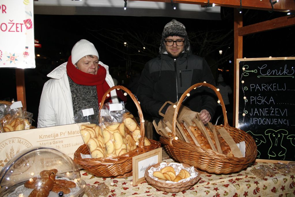 Med tem se je na osrednjem trgu v Lukovici že marsikaj dogajalo, saj kakor je dejala napovedovalka Tanja Vidic Goršak je kaj videti, okušati in kupiti. Za prijetno vzdušje je poskrbela godba Lukovica z igranjem koračnic, tako, da sta tudi sveti Miklavž in županja mag. Olga Vrankar na prireditveni prostor prišla ob zvokih koračnice. Še prej pa smo si lahko ogledali pestro ponudbo, ki jo znajo pričarati ponudniki dobrot iz Črnega grabna. Od medu, slaščic, parkeljnev takih pečenih na kmetiji Pr’ Matožet in vse do odličnih palačink, kuhanega vina in vroče čokolade. Obisk ostalih stojnic smo preložili za kasneje, saj sta na prireditveni prostor prišla sveti Miklavž in županja, da skupaj prižgeta praznične lučke in naznanita, da se je veseli december začel.