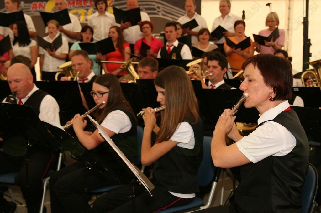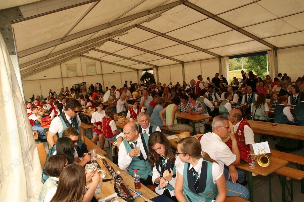 Vsi štirje orkestri so se zbrali na vrhu Prevoj in nato eden za drugim v povorki krenili proti prireditvenemu prostoru na igrišču v Šentvidu pri Lukovici. Nato so sledili koncerti posameznih orkestrov Šenčur, Marezige in Domžale, ki so se zbranim poslušalcem predstavili z zelo kakovostnim programom zabavnih skladb, kjer ni manjkalo solističnih vložkov. Kot zadnja se je predstavila slavljenka, Godba Lukovica, pod vodstvom dirigenta Petra Šale. Prvo skladbo je izvedla skupaj s kar tremi pevskimi zbori: Šentviški zvon, Mladost in Janko Kersnik. Sledila je skladba, v kateri so se predstavili trije solisti na klarinetu in nato še pet godbenikov, ki so ubrano zapeli Rženovo Tinko ob spremljavi kolegov iz orkestra. Za konec glasbenega programa je Godba Lukovica izvedba še venček skladb ansambla Svetlin, katerega člani so se tudi priključili igranju.