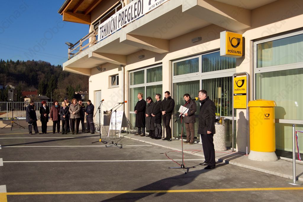 Trak ob otvoritvi naložbe v vrednosti skoraj 420 tisoč evrov sta poleg župana Matej Kotnika in upravnice pošte Bogdane Gerčar prerezala tudi direktor PE Pošte Slovenije v Ljubljani Evgen Zadnik in namestnik generalnega direktorja Pošte Slovenije mag. Igor Marinič. Slednji je v nagovor spregovoril o trenutnem položaju Pošte Slovenije in da je to družba, ki nikakor ni monopolist ampak je na trgu. Kasneje pa je v pogovoru poudaril, da je odprtje takšnih novih prostorov za pošto vedno velik dogodek in dodal:”Poskušamo obnavljati tudi druge pošte, odpirali bomo tudi nove, vendar v malo manjšem obsegu. Moramo upoštevati vse omejitve, ki jih ima sedaj pošta. Določene pošte bomo centralizirali, določene spreminjali v premične pošte in tudi v pogodbene pošte. Temu se je potrebno prilagoditi.“
