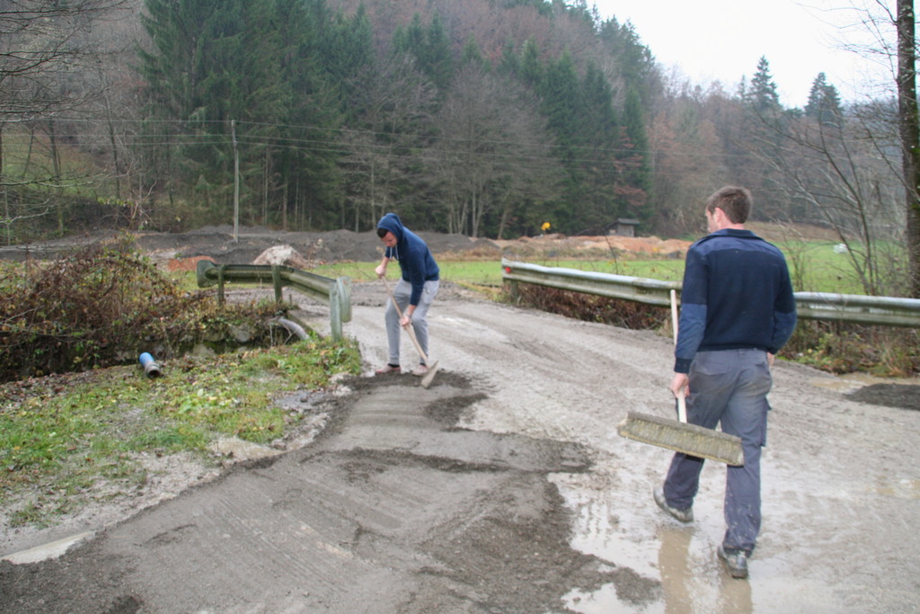 Počasi, a res počasi športni park oziroma igrišče v Trnjavi dobiva svojo osnovno podobo. Nešteto voženj tovornih vozil materiala za nasutje je po drugi strani dobrodošlo, a za njimi ostaja blatna cesta. Zato so se člani ŠKD Bregar odločili, da v soboto 26. novembra polepšajo ter uredijo cestišče v zadovoljstvo vseh uporabnikov. Ob pomoči mehanizacije je tako makadamski del dobil novo nasutje, asvaltni del je bil deležen strojnega in ročnega pometanja ter pranja. Blato je odšlo in ponovno se je pokazala malce razpokana asfaltna prevleka, a razpoke niso zaradi voženj temveč zaradi zoba časa, ki je že dodobra načel cesto , ki vodi proti koncu doline. Kar hitro je minilo popoldne in preden je mrak legel na zemljo so bila zadnja ročna dela končana. Člani ŠKD Bregar so delovno druženje nadaljevali z bolj prijetnim druženjem v klubski sobi, kajti po delu se prileže  tudi kozarček kuhanega, ki zagotovo ne škodi, če je v mejah normale.