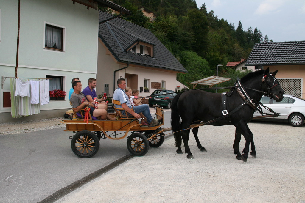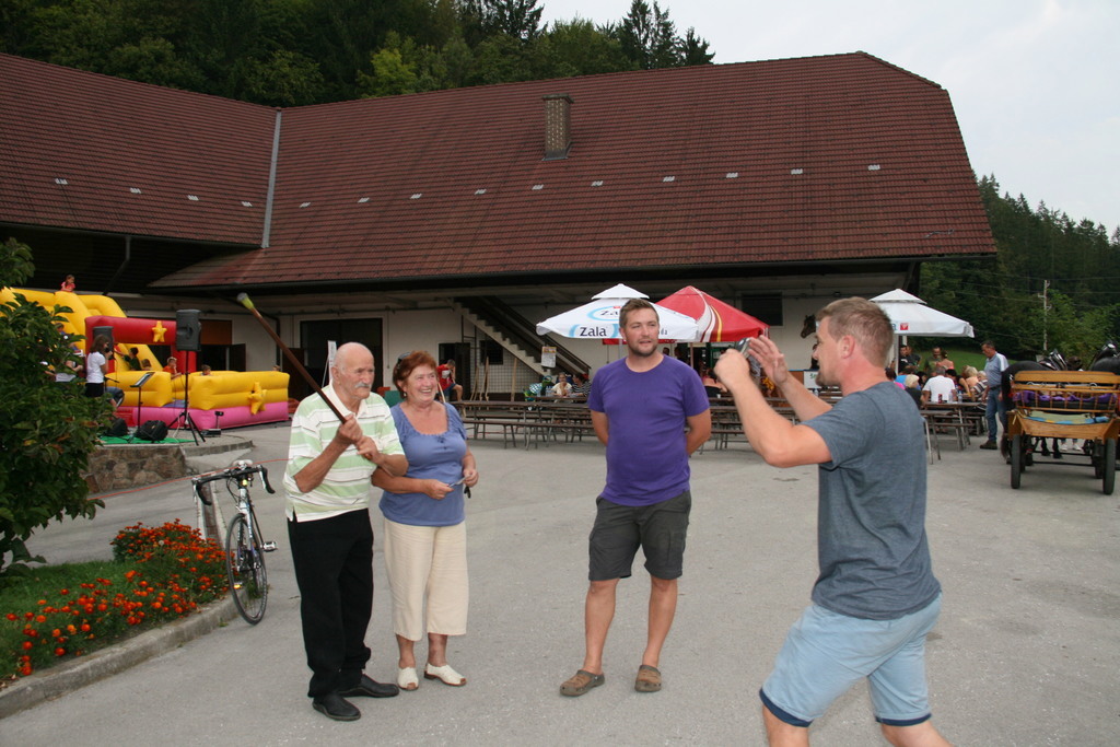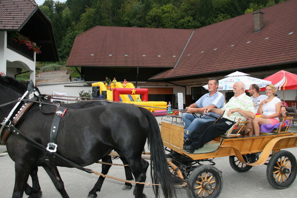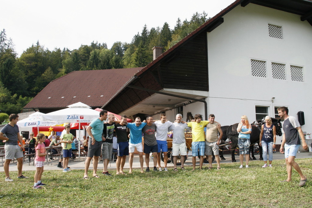 En kovač konja kuje , kolko žebljev potrebuje vendar se tokrat Dan odprtih vrat kmetije Pr´Bregar ni začel z kovačem pač pa z ježo konj. Na začetek vstopa v lepo jesen, vsaj upamo lahko , da bo taka, je v sklop letošnjih prireditev v okviru občinskega praznika Občine Lukovice Srce Slovenije pripravilo vikend odprtih vrat v Lukovici. Tako so bili dnevi od petka do nedelje v Lukovici polni dogodkov, ki so privabili številne obiskovalce od blizu in daleč. Na kmetiji Pr´Bregar v Trnjavi, kjer domuje tudi Športno društvo Bregar so pripravili res pester program za celo družino, ki se je odvijal preko celega dne. Tako so, kakor sem že zapisal v jutranjih urah mnogi sedli na hrbte konji in se v spremstvu seveda podali na pot po meneži. Potem je prišlo na vrsto čiščenje konj in tega dela so se zvesto lotila mlada dekleta in konji so sijali po opravljenem delu, nekateri so imeli celo kitke. In ker morajo tudi konji imeti obuvala , kakor mi čevlje, da nas ne bode jih je v najmodernejše po najnovejši modi in po meri obul kovač Rok Gumilar. Seveda je prej popravil oziroma kakor je dejal izvršiš korekturo hoje in nato še zmanikaral kopita, le na koncu jih ni pobarval, pa nič zato. Z zanimanjem smo si ogledali njegovo delo in ugotovili tudi zakaj imajo žeblji za kovanje takšno obliko, zakaj moramo redno negovati konjeva kopita, ter še marsikaj novega. In dan se je prevesil v drugo polovico, ko je bil čas namenjen igram in lahko rečem oziroma zapišem hišnemu ansamblu ŠKD Bregar Skrivnostnicam, ki so dan poprej na festivalu ženskih ansamblov v Gadovi peči dobile nagrado za Naj debitanta in 3. nagrado občinstva. In med tem, ko so se one ogrevale smo se posedli v kočijo oziroma zapravljivček in hija, se podali po Trnjavi. Med vozniki je kočijaž zaupal vajeti tudi korajžnemu dekletu, ki nas je lepo vozilo sem ter tja. Poleg tekmovanja za mlade in stare v iskanju skritega zaklada, metanju podkev, hoje z hoduljami so pripravili še zelo zanimivo nagradno igro, ki je zahtevala tako umsko, kakor tehnično znanje in še malce sreče povrh. Pred časom smo že zapisali, da ŠKD Bregar ureja v Trnjavi športni park, ki je bil velika želja pokojnega Marjana, ustanovitelja društva in zato so sredstva zbrana na tokratni prireditvi romala za ureditev športnega parka. Prav zanimivo je bilo namreč tokrat uganiti koliko tehta košarica dobrot iz ekološke predelave, ki jo je pripravila kmetija Pr´Vazarju iz Trnjave. Kljub večkratnemu tehtanju in jo primerjanju z harmoniko, kar so naredile Skrivnostnice je bilo zelo težko ugotoviti koliko tehtajo dobrote z domačega vrta v košarici, ki so zagotovo končale v loncu zmagovalca. In ker je namen druženja tudi osveščanje in izobraževanje obiskovalcev so tudi letos poskrbeli za izobraževanje in poleg kovača predstavili še prikolice za prevoz živali zastopnika Dovžan d.o.o. skupaj z vozili SEAT prodajalca Avto Cerar iz Kamnika. Oba sta namreč poskrbela za praktične nagrade tekmovalcem, ki jih ni bilo malo. Da je bilo tokratno druženje res druženje za vso družina priča tudi to, da je prireditev obiskal Egidij Capuder Kicov Tilo, kmet in izreden ljubitelj konj, da o njegovih letih in smislu za humor ne izgubljam besed. Zahvaljujoč dobri postrežbi in pestremu programu so se nekateri, ki so prišli že v jutranjih urah se poslovili šele, ko se je dan prevesil v noč z obljubo, da še pridejo, če bodo le zasledili povabilo. Kicu Tilo je rekel, fantje moji jaz pridem prihodnje leto zagotovo, sam , da boste vi še tu in mož, ki premore že 96 križev točneje 18. avgusta si je naložil že novega je bil ravno zato, ker se drži kot stara grča v znak spoštovanja bil sprejet z močnim aplavzom. Sicer so se na dvorišču kmetije tokrat srečali poleg številnih mlajših in malo mlajših še nekatere staroste Črnega grabna in prav lepo so se pomenili ob kozarčku rujnega kako pak. Tistim, ki ste tokratni dan zamudili, še sonce ga ni je kmalu vstalo in pozno šlo spat nasvidenje prihodnje leto na kmetiji Pr´Bregar na konjeniškem dnevu pridite ne bo Vam žal.