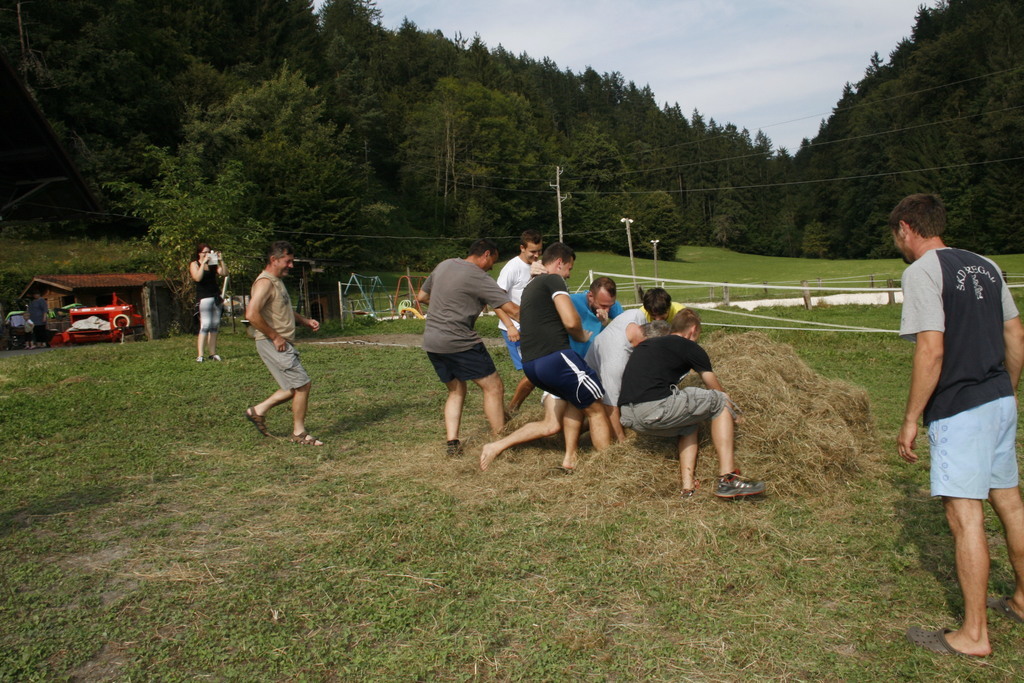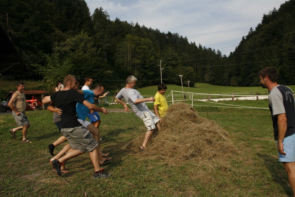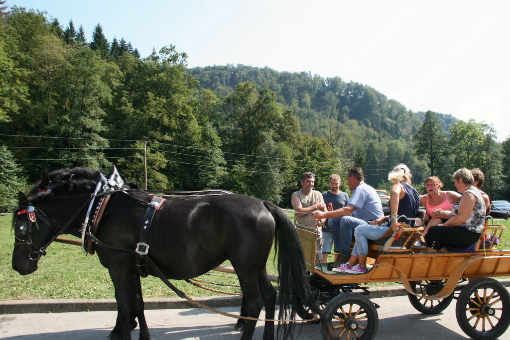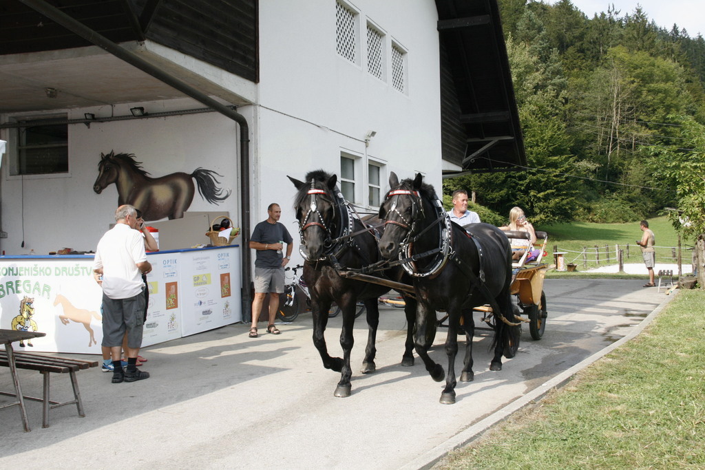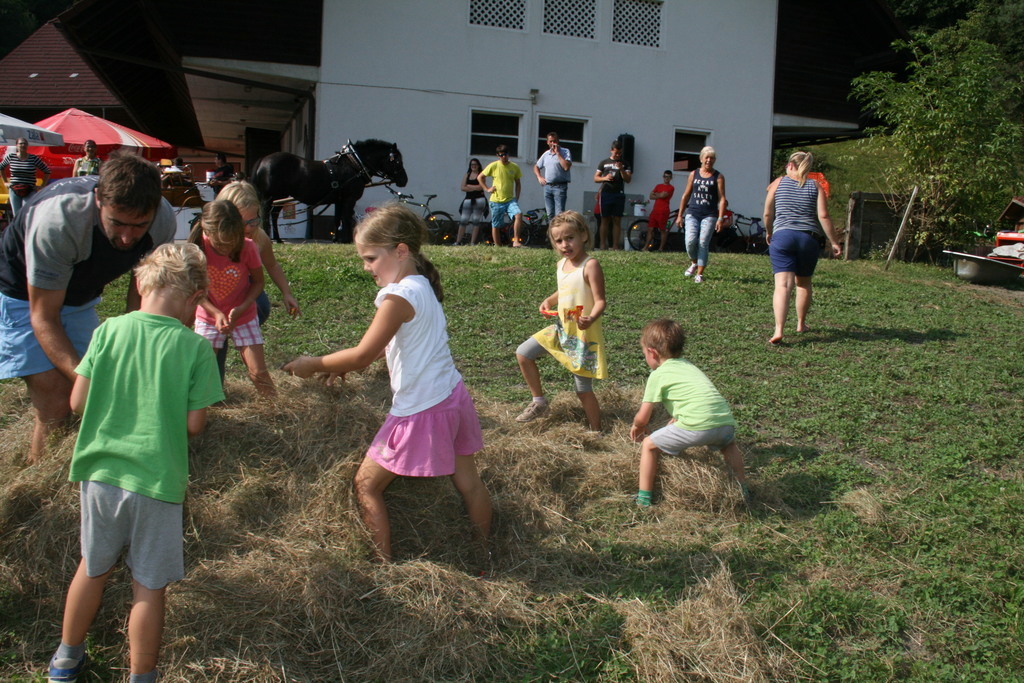 En kovač konja kuje , kolko žebljev potrebuje vendar se tokrat Dan odprtih vrat kmetije Pr´Bregar ni začel z kovačem pač pa z ježo konj. Na začetek vstopa v lepo jesen, vsaj upamo lahko , da bo taka, je v sklop letošnjih prireditev v okviru občinskega praznika Občine Lukovice Srce Slovenije pripravilo vikend odprtih vrat v Lukovici. Tako so bili dnevi od petka do nedelje v Lukovici polni dogodkov, ki so privabili številne obiskovalce od blizu in daleč. Na kmetiji Pr´Bregar v Trnjavi, kjer domuje tudi Športno društvo Bregar so pripravili res pester program za celo družino, ki se je odvijal preko celega dne. Tako so, kakor sem že zapisal v jutranjih urah mnogi sedli na hrbte konji in se v spremstvu seveda podali na pot po meneži. Potem je prišlo na vrsto čiščenje konj in tega dela so se zvesto lotila mlada dekleta in konji so sijali po opravljenem delu, nekateri so imeli celo kitke. In ker morajo tudi konji imeti obuvala , kakor mi čevlje, da nas ne bode jih je v najmodernejše po najnovejši modi in po meri obul kovač Rok Gumilar. Seveda je prej popravil oziroma kakor je dejal izvršiš korekturo hoje in nato še zmanikaral kopita, le na koncu jih ni pobarval, pa nič zato. Z zanimanjem smo si ogledali njegovo delo in ugotovili tudi zakaj imajo žeblji za kovanje takšno obliko, zakaj moramo redno negovati konjeva kopita, ter še marsikaj novega. In dan se je prevesil v drugo polovico, ko je bil čas namenjen igram in lahko rečem oziroma zapišem hišnemu ansamblu ŠKD Bregar Skrivnostnicam, ki so dan poprej na festivalu ženskih ansamblov v Gadovi peči dobile nagrado za Naj debitanta in 3. nagrado občinstva. In med tem, ko so se one ogrevale smo se posedli v kočijo oziroma zapravljivček in hija, se podali po Trnjavi. Med vozniki je kočijaž zaupal vajeti tudi korajžnemu dekletu, ki nas je lepo vozilo sem ter tja. Poleg tekmovanja za mlade in stare v iskanju skritega zaklada, metanju podkev, hoje z hoduljami so pripravili še zelo zanimivo nagradno igro, ki je zahtevala tako umsko, kakor tehnično znanje in še malce sreče povrh. Pred časom smo že zapisali, da ŠKD Bregar ureja v Trnjavi športni park, ki je bil velika želja pokojnega Marjana, ustanovitelja društva in zato so sredstva zbrana na tokratni prireditvi romala za ureditev športnega parka. Prav zanimivo je bilo namreč tokrat uganiti koliko tehta košarica dobrot iz ekološke predelave, ki jo je pripravila kmetija Pr´Vazarju iz Trnjave. Kljub večkratnemu tehtanju in jo primerjanju z harmoniko, kar so naredile Skrivnostnice je bilo zelo težko ugotoviti koliko tehtajo dobrote z domačega vrta v košarici, ki so zagotovo končale v loncu zmagovalca. In ker je namen druženja tudi osveščanje in izobraževanje obiskovalcev so tudi letos poskrbeli za izobraževanje in poleg kovača predstavili še prikolice za prevoz živali zastopnika Dovžan d.o.o. skupaj z vozili SEAT prodajalca Avto Cerar iz Kamnika. Oba sta namreč poskrbela za praktične nagrade tekmovalcem, ki jih ni bilo malo. Da je bilo tokratno druženje res druženje za vso družina priča tudi to, da je prireditev obiskal Egidij Capuder Kicov Tilo, kmet in izreden ljubitelj konj, da o njegovih letih in smislu za humor ne izgubljam besed. Zahvaljujoč dobri postrežbi in pestremu programu so se nekateri, ki so prišli že v jutranjih urah se poslovili šele, ko se je dan prevesil v noč z obljubo, da še pridejo, če bodo le zasledili povabilo. Kicu Tilo je rekel, fantje moji jaz pridem prihodnje leto zagotovo, sam , da boste vi še tu in mož, ki premore že 96 križev točneje 18. avgusta si je naložil že novega je bil ravno zato, ker se drži kot stara grča v znak spoštovanja bil sprejet z močnim aplavzom. Sicer so se na dvorišču kmetije tokrat srečali poleg številnih mlajših in malo mlajših še nekatere staroste Črnega grabna in prav lepo so se pomenili ob kozarčku rujnega kako pak. Tistim, ki ste tokratni dan zamudili, še sonce ga ni je kmalu vstalo in pozno šlo spat nasvidenje prihodnje leto na kmetiji Pr´Bregar na konjeniškem dnevu pridite ne bo Vam žal.
