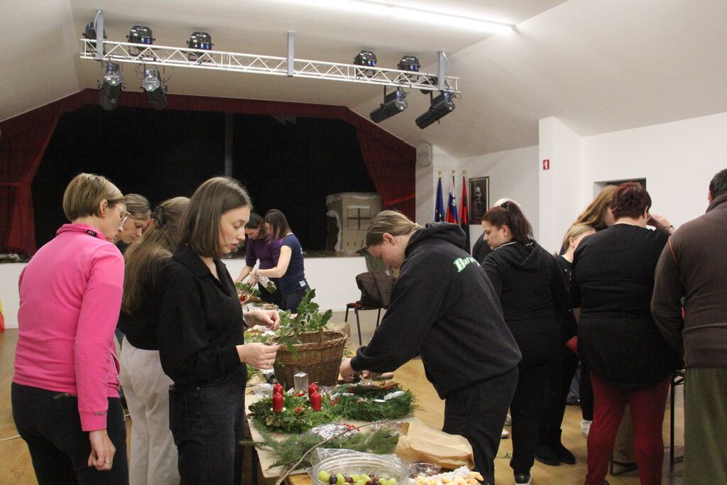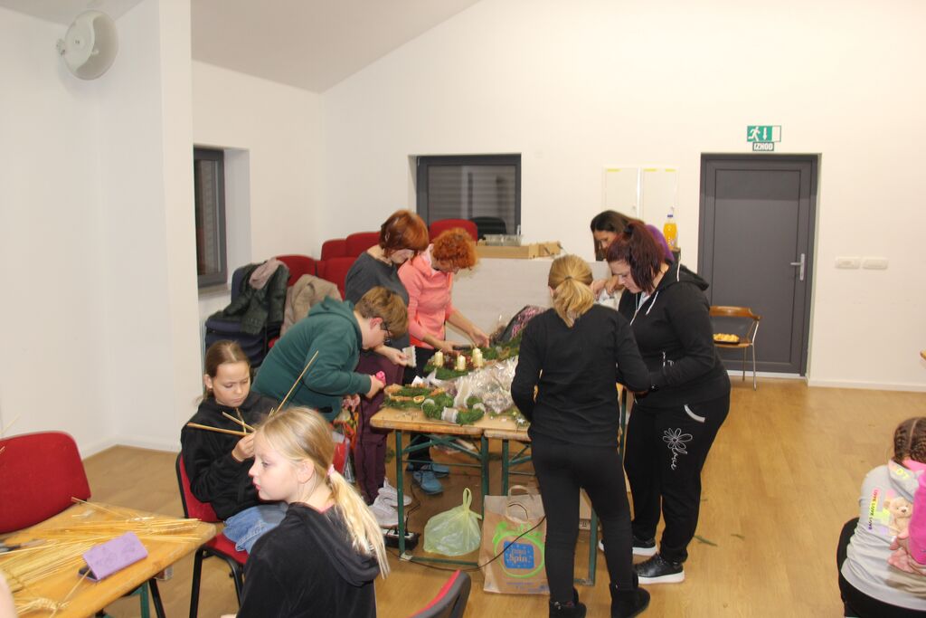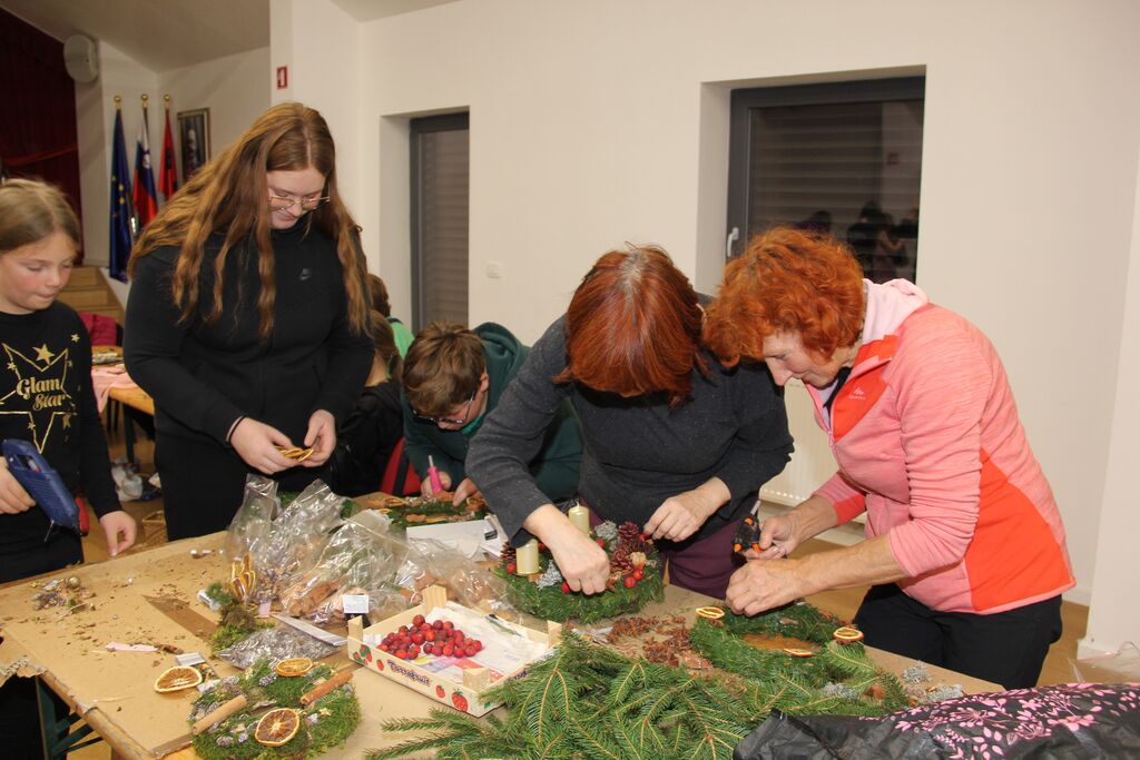 KUD Fran Maselj Podlimbarski je zato v soboto, 29. novembra, v Društveno dvorano povabil vse, ki bi si želeli izdelati svoj adventni venček. Prizadevni člani in članice, slednje so v večini pripravile ves potreben material in izdelava venčkov se je lahko začela. Ker delo utruja je bilo poskrbljeno tudi za okrepčilo. Kot zanimivost in v