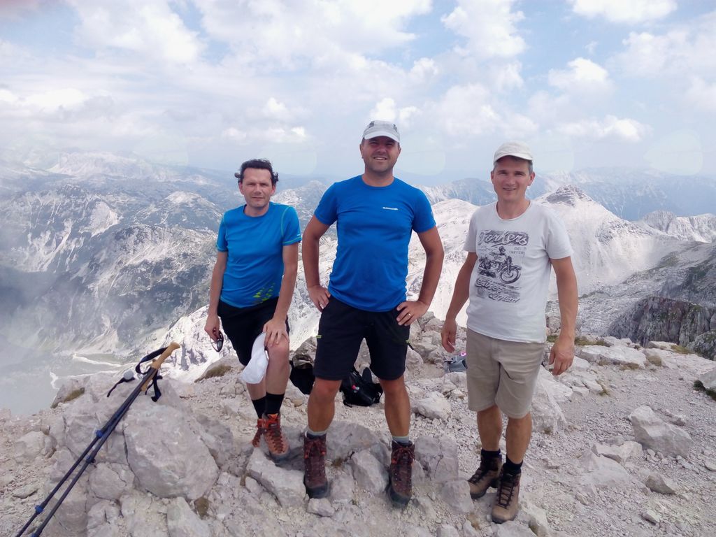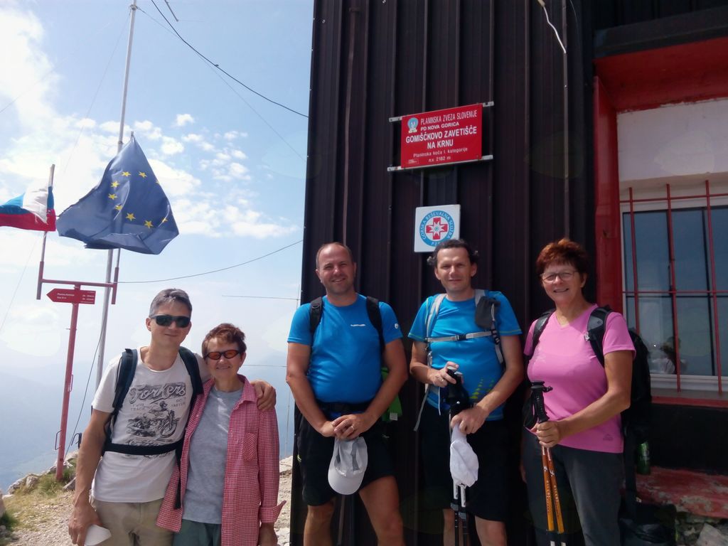 Prvo avgustovsko soboto smo pohodniki pod okriljem ŠTD Rafolče odpravili na Krn (2244 m). Krn s svojo značilno obliko privlači poglede že od daleč. Proti severu in zahodu je vrh strmo odsekan, na južni strani pa se prijaznejše spušča preko zelenih travnikov proti dolini Soče. Na Krnu in sosednji Batognici so potekali hudi boji med 1. svetovno vojno in še vedno lahko vidimo ostanke bodeče žice, granat in razdejanje po eksploziji na vrhu Batognice. Na pot smo se podali s Planine Kuhinja. Že takoj s parkirišča ugledamo naša dva cijla, Gomiščkovo zavetišče na Krnu (2182 m) in Krn (2244m). Seveda, ko pa so prostrana južna pobočja Krna bolj ali manj porasla s travami. Na pobočjih je kar nekaj pašnih planin. Na planini Slapnik, kjer so preostanki starega vojaškega zaselka, smo si v senci redkih dreves privoščili kratek počitek in malico. Korito za napajanje živine je kar klicalo k ohladitvi, a kaj ko je bilo do vrha še kar nekaj. V nadaljevanju poti so, soncu izpostavljena, pobočja predstavljala dodatno obremenitev v vroči avgustovski soboti. Lahno vzpenjajoča pot nas je kmalu pripeljala na greben, kjer se nam je odprl lep pogled proti Matajurju, ki smo ga tudi že osvojili. Vseskozi se nam je z vrha kazalo Gomiščkovo zavetišče, a poti kar ni bilo konca. Pot po grebenu poteka vseskozi v cik cak ovinkih (ključih). Po malo več kot treh urah smo prispeli do Gomiškovega zavetišča in po kratkem premoru še ca 10 minut oddaljen vrh. Z vrha je veličasten razlged na Krnsko jezero in proti najvišjim vrhovom Julijskih alp. Žal vreme ni dopuščalo, da bi razgled segal tudi do Jadranskega morja. Ob povratku smo se ustavili še na planini Kuhinja. V zadnjem delu poti smo pot preko nežnih trav nekateri premagovali kar bosonogi. S pohodom na Krn smo v niz osvojenih vrhov dodali še en kamenček. Septembra pa nas čaka Dovška Baba.
