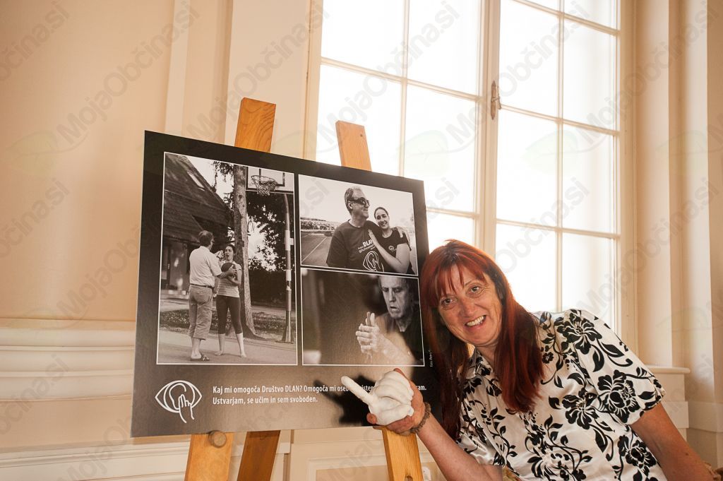 Tako smo Meta, Petra,Sabina in Silvija tega dne že zgodaj zjutraj v kristalni dvorani postavljale stojala za fotografije, ki jih je skrbno razvrščala Petra in na mize polagale kipe obrazov. Vse tri smo se strinjale, da postavimo obraze na skupno mizo, povezane v dialog, v skupen pogovor, kot najvažnejšo vez med njimi. Oči, votle in brez polnila so njihova skupna značilnost. Kot da je umetnik želel s tem pokazati svojo bolečino, saj z njim doživljamo praznino v očeh, ki nakazuje njegovo slepoto. Na drugo stran smo razvrstile na mizo še ostala kiparska dela društva DLAN. Težko si je predstavljati , da gluhoslepa oseba izdela tako dovršeno delo, le na osnovi opisane slike. Pri pripravah se nam je pridružil tudi Jernej iz društva DLAN. Fotografije nazorno predstavljajo društvo DLAN, prikazujejo raznolike aktivnosti iz življenja gluhoslepih in dokazujejo, kaj vse zmorejo. Bila sem ponosna, da sem lahko v kratkem kulturnem programu prebrala prelepo pesem gluhoslepe avtorice, gospe Jožice Atelšek, z naslovom »Ko ugašajo luči«. Hvaležna Tanji, Cvetotu in Meti za vzpodbudo pred nastopom. Ne recitiraš vsak dan pred predsednikom. Po uradnem programu smo si skupaj ogledali predsedniško palačo in njegov kabinet, kjer je sproščeno odgovarjal na vprašanja obiskovalcev.