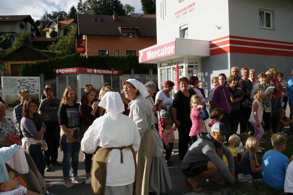 Člani in članice KUD Fran Maselj Podlimbarski so v nedeljo 3. septembra v sodelovanju z krajani pripravili zanimivo popotovanje po Krašnji, ki smo ga udeleženci opravili kar peš. Ob pomoči Brine in Lucije smo tako spoznavali zgodovino kraja, ki se lahko pohvali, da je kraj obiskal in tam tudi prenočil sam cesar Franc Jožef. Pot smo premagovali tudi ob pomoči pevcev, ki nam zapeli marsikatero že skoraj pozabljeno povezano z dogodkom pri hiši kjer smo se ustavili. Poleg hiš v kateri so prebivali, ali samo prenočevali zanimivi gostje so imeli v Krašnji še mitnico, mesnico in trgovine. To, da so malce prekupčevali z tobakom je bila javna skrivnost, ki je ni izdal nihče. Tudi čevljarstvo je v kraju imelo bogato zgodovino, ki jo sedaj ohranjajo še pri Dragar, da o pletenju slamnatih kit ne pišem. Pomikajoč se od ene znamenite in zanimive zgradbe do druge, smo bili deležni tudi okrepčila še posebno na kmetiji Pr' Matožet, kjer smo bili deležni Jožefove pogače. In čeravno je iz tistih davnih časov je prav dobro teknila tudi nam vajenim sodobnejše prehrane. Sem pa ugotovil , da imajo pri njih tudi neke vrste mitnico, saj se je kar nekaj obiskovalcev zadržalo pri njihovih dobrotah dalj časa. Tisti izgovor , da so gledali kako pletejo kite iz slame je bil pa iz slame zvit. In smo šli dalje, še na ogled nekdanje trgovine, kjer smo za kamenček kupovali cukre in piškote in nato pred farovž, da se seznanimo še z eno znamenitostjo. Kajti farovška kuhinja je bila večkrat pod vodo so dejali, ker so tam pod kuhinjskim podom izvirali studenci. Nekaj besed je bilo namenjeni tudi cerkvi svetega Tomaža in njeni zgodovini od začetka do današnjih dni in nato smo jo mahnili za potok. Tam smo izvedeli kaj je počela otročaj na vasi v tistih ne tako davnih časih, od peric pa vse drugo. So bile še bolj na tekočem kakor marsikateri novejši medij. Še skok do gasilcev, ki so pokazali kako se je gasilo nekoč in tudi o tem, kako so rešili brizgalno med vojno, da so nam lahko pokazali gašenje. Zanimiv sprehod skozi zgodovino vasi, skozi katero smo se še ne tako dolgo vozili proti Trojanam in Štajerski, ali obratno, danes pa le redki zaidejo vanjo. In če bi, bi izvedeli marsikaj poučnega in zanimivega o njej in njeni zgodovini, na kar opozarjajo številni panoji pred hišami z bogato zgodovino. .Del zgodovine si lahko ogledatetiudi če obiščete muzejsko zbirko v Pavletovi hiši in ne bo vam žal..