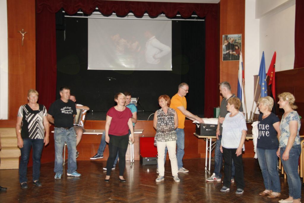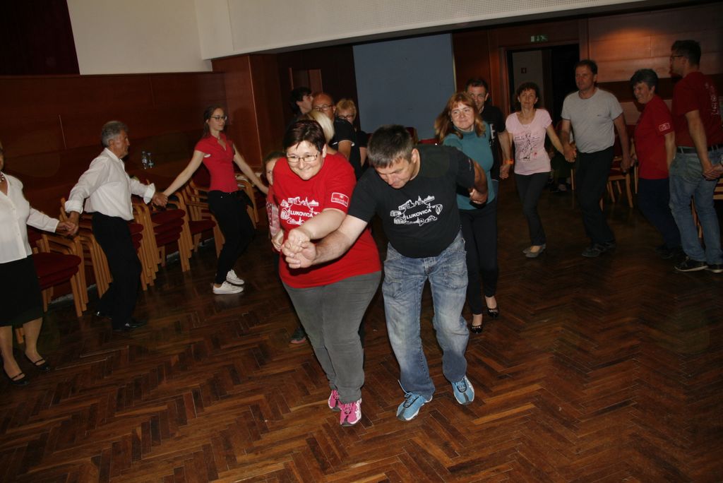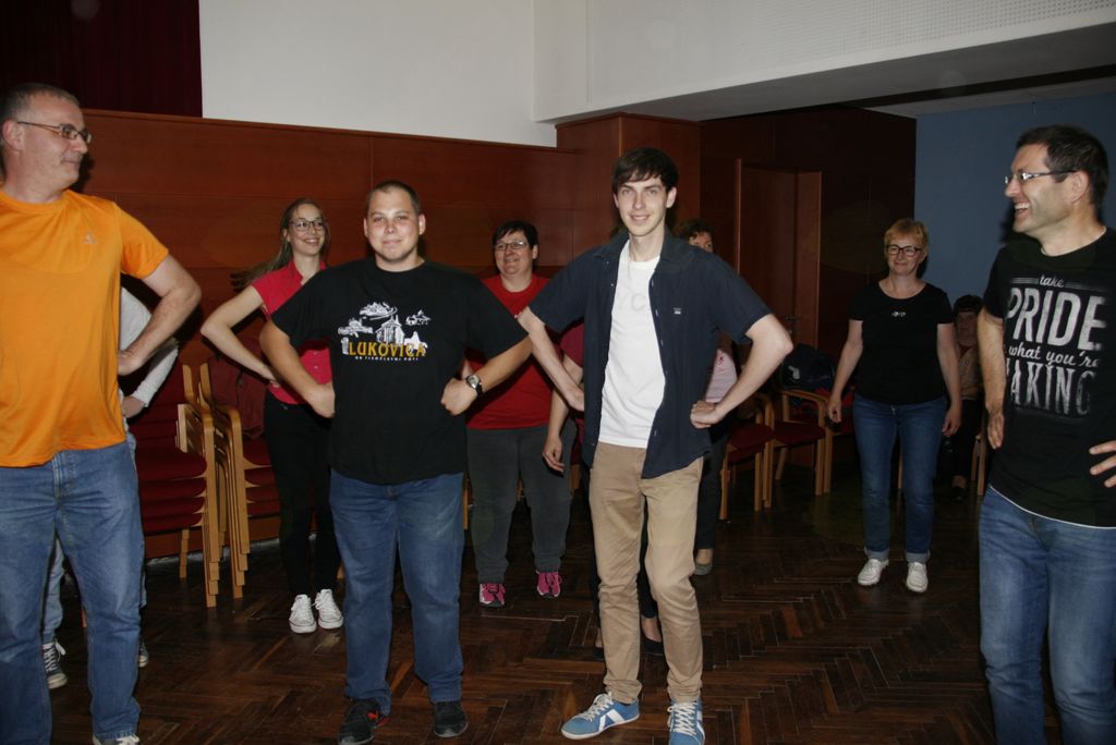 Prvi dan odprtih vrat Folklorno kulturnega društva Lukovica v kulturnem domu Antona Martina Slomška v Šentvidu pri Lukovici je minil v znamenju dobrega razpoloženja, številnih plesov in iger ter druženja mladih in starih plesalcev in obiskovalcev. V uvodu nam je Simona Drolc razložila namen tokratnega dneva , bolje večera, nato je že sledil prvi napornejši del. Plesalci in plesalke, novi in stari so se porazdelili po dvorani in začel se je ples. Najprej uvodni koraki, nato obrat in nato.....joj koliko se je za zapomnit ,a je vsem prav dobro šlo in v prvem delu so vsi osvojili ples do potankosti kot v šovu Zvezde plešejo. In ker si po plesu ne samo zadihan, ampak tudi lačen in žejen je sledil odmor ob močno obloženi mizi slastnih domačih dobrot, ki so jih pripravile članice društva. In, da se hrana malce poleže prisluhnemo razlagi noš, ki jih imajo naši plesalci in izvirajo iz začetka 19 stoletja. Njihove noše so replika tedanjih noš in se po materialu in izdelavi ne ločijo od originalov, kar nam pove tudi cena posameznega dela noše. V drugem delu dneva odprtih vrat, ki so bile odprte še pozno v noč so prišle najprej na vrsto družabne igre in na koncu še povštertanc, ki kakor ples z metlo spada med starejše plese. In kaj pridobimo, če pridemo v Folklorno kulturno društvo Lukovica in tam začnemo z plesom? Poleg tega, da pridete v družbo prijaznih in nasmejanih ljudi, si z plesom povečamo svojo gibljivost, se sprostimo in izboljšamo samopodobo. Kajti ples je terapevtsko sredstvo in se ga uporablja, kot sredstvo za izboljšanje našega čustvenega, socialnega in fizičnega stanja , ter odlično preventivno vpliva proti izgubi spomina. Kar pomeni, da kdor pleše ga demenca in stres ulovita veliko kasneje, če jima sploh uspe. Torej dobrodošli v Folklorno kulturno društvo Lukovica med prijazne ljudi , ki z plesom preganjajo stres in tegobe današnjega časa. Saj res skoraj bi pozabil in, ko gostujejo obiščejo še veliko zanimivih krajev in dežel, torej pridete!