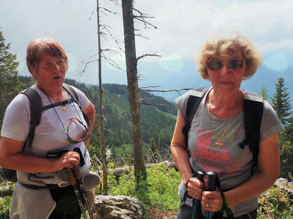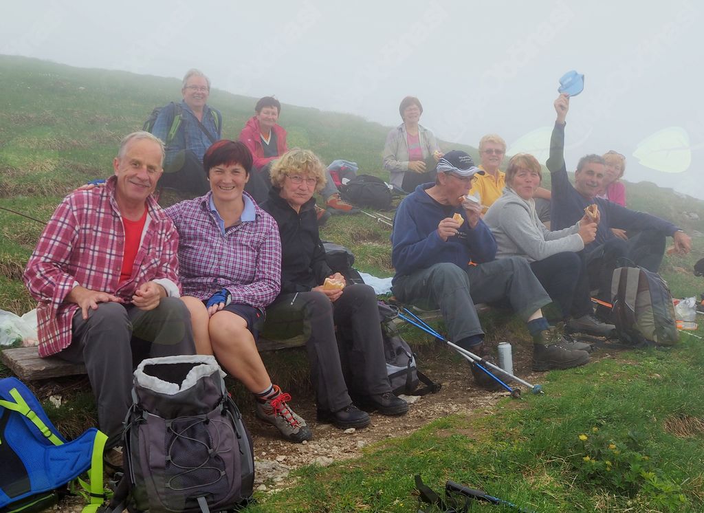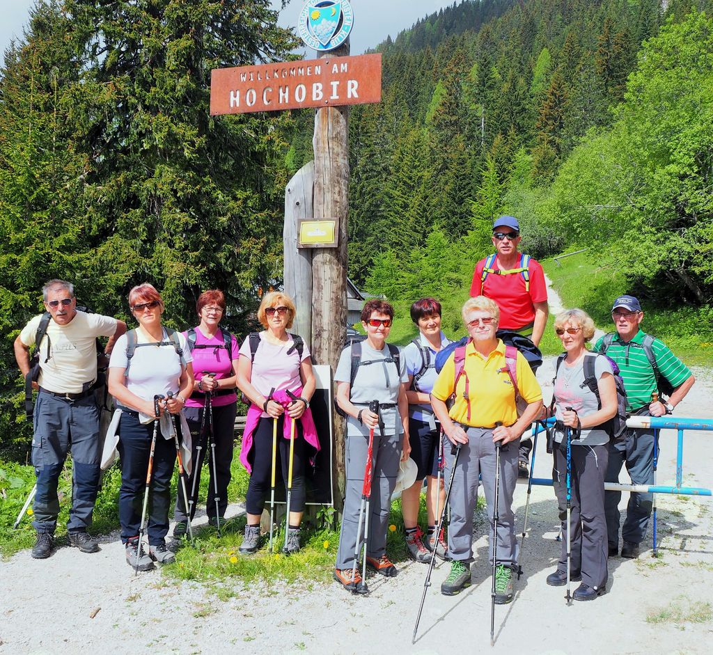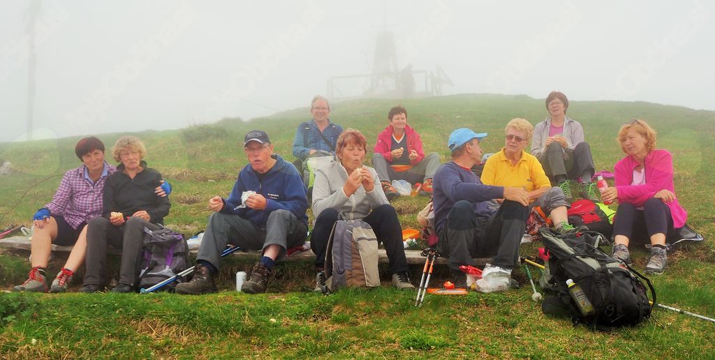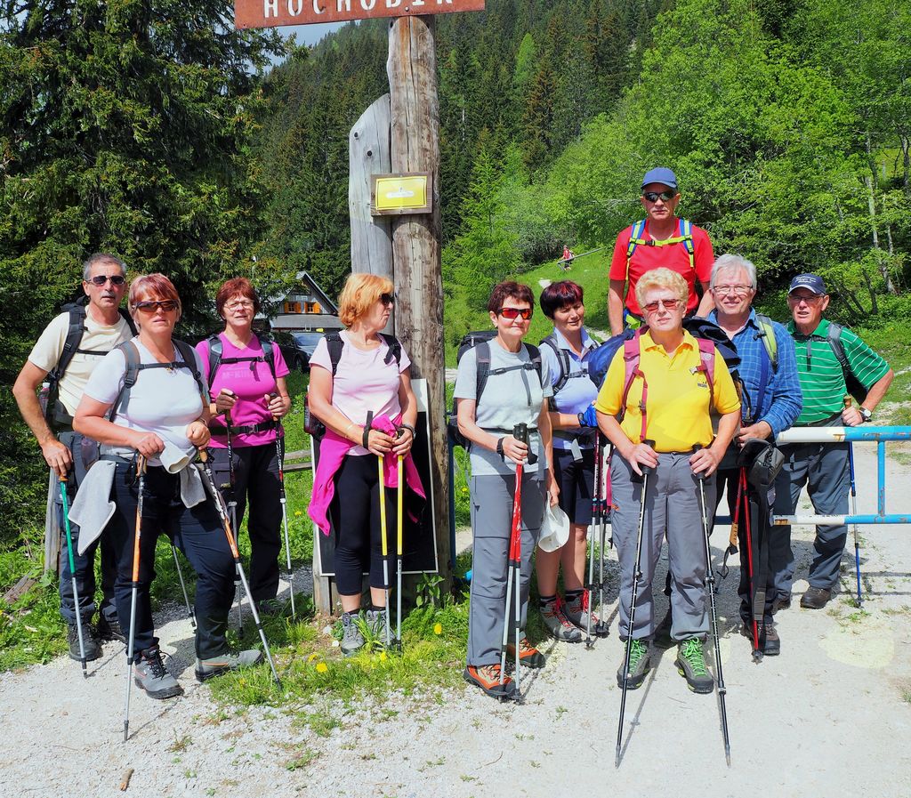 V Železni Kapli smo nekoliko zgrešili pot na pogorje Obirja, vendar smo se kmalu uspešno povzpeli na najvišji vrh Ojstrc (Hochobir)  z nadmorsko višino 2139 m od izhodiščne točke Kapelske koče (1553 m), od koder smo hodili proti vrhu  dobri dve uri. Ojstrc se nahaja zahodno od Železne Kaple (Eisenkappel) na avstrijski strani Karavank. Na naravoslovni poti proti vrhu so nas table opozarjale na strukturo tal in rastja, ter opisovale vrste drevja (drevo kot svetilnik – odlomljen vrh zaradi strele…) in bogatega rastlinja. Uživali smo v pogledih na krasne encijane, murke, vetrnice, pljučnik in ostale lepe cvetlice v deželi ruševca. Ob srečevanju s planinci so nas pozdravljali medkulturno z Grüß Gott in Servus, mi pa z dober dan. Na vrhu je postavljen križ in meteorološka postaja, kjer je lep razgled na severna ostenja Košute, del Kamniških in Savinjskih Alp, proti severu pa se vidi Mali Obir (Kleinobir) in del Dravske doline, ki se je pokazala le ob odmiku oblakov, ko jo je obsijalo sonce. Po malici in slikanju na vrhu se je pooblačilo in mrzel dež s točo nas je napodil nazaj v dolino. Voditeljica odprave Marijana nas je varno usmerjala.