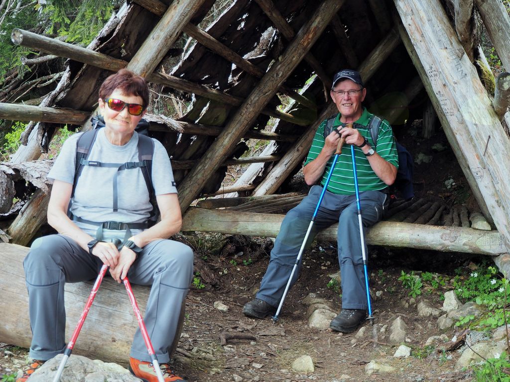 Po mastnih skalah smo previdno sestopali in po polurni plohi prispeli že skoraj popolnoma suhi do Kapelske koče, kjer smo se odžejali in pojedli preostanek malice.