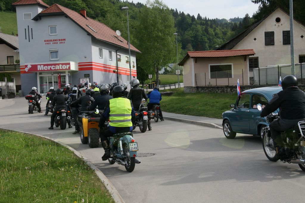 V Črnem grabnu smo že vajeni, da nas s svojimi koncerti na predvečer praznika dela navdušujejo godbeniki Godbe Lukovica, ki letos praznujejo 20 letnico obstoja in, da nas v praznično jutro zbudijo člani AMD Lukovica z malce drugačno glasbo. Vonj po bencinskih hlapih, hrup motorjev in avtomobilov prebudi še tako zaspane, da pokukajo izpod odej v tokrat sončno praznično jutro. Če ima godba Lukovica vsako leto nastope v različnih krajih, letos so obiskali Trojane, Češnjice, Koreno, Koseze, Dupeljne in zaključili na Prevojah, budničarji AMD Lukovica obredejo občino po dolgem in počez. V mnogih krajih jih pričakajo gospodinje in jim postrežejo z domačimi dobrotami, da jim ne poidejo moči do naslednjega postanka. In tako je bilo tudi v Krašnji, kjer smo bili dobrot deležni tudi tisti, ki smo si prišli ogledat budničarje. In priznam moram splačalo se je priti, saj so se v kraju res potrudili in pripravili številne domače dobrote od mesnih do sladkih, ter poskrbeli, da so dobrote tudi malce zaplavale. . Poleg številnih motorjev, novih in starih, je bilo med budničarji opaziti tudi starodobnike in med njimi tudi dobri stari Tomos, ki še veselo prede po naših cestah. Še vsak od voznikov vzame malce sladkega in že se opravijo naprej v hrib in nato v dolino, kjer zavijejo še v Trnjavo in nato dalje proti končnemu cilju tokratne prvomajske budnice do vulkanizerstva Lenček, ali kakor pravijo po domače, do gumice, kjer jih je poleg številnih kulinaričnih dobrot in pijače čakal verjetno tudi golaž, tokrat prvomajski seveda. Varno in srečno so tokrat prevozili traso sem in nazaj naši motoristični budničarji, upajmo, da bodo takšno srečo imeli tudi čez celo letošnjo motoristično sezono.
