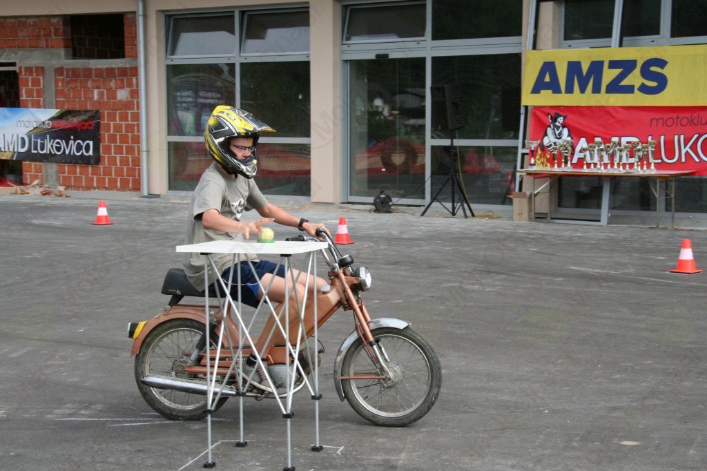 Številni vozniki motornih koles, mopedov, štirikolesnikov in tudi ostali obiskovalci so se zbral na asfaltnem in makadamskem delu pred poslovno stavbo Avto Kveder v Lukovici na spretnostnemu preizkusu mopedistov in »lažjih« motornih koles. Nešteto znanih moto športnikov je izšlo iz vrst AMD Lukovica in mogoče bo kdaj po lovorikah posegel tudi kateri izmed teh , ki so se tokrat pomerili v tekmovanju. V kategoriji do 50 ccm je z najhitrejšim časom zmagal Gašper Mahkota , pred Iztokom Gostičem in Simonom Avbeljem. V kategoriji do 350ccm je prepričljivo zmagal Uroš Dovjak pred Vladimirjem Andrejko in Jakom Kersnikom. V kategoriji nad 350ccm pa je bil prvi Aleš Premec pred Vladimirjem Andrejko in Romanom Šmejcem. V skupni kategoriji motocross in enduro je slavil Uroš Dovjak pred Simonom Avbeljem, med štirikolesniki pa so si prva tri mesta razdelili Uroš Dovjak, Rok Zupančič in Dušan Novak. Podeljenih je bilo še nekaj posebnih nagrad za najhitrejši čas, najmlajši udeleženec je bil Gašper Vajde, najstarejši Silvo Andrejka in najhitrejša med dekleti Mateja Kavšek. Po končanem tekmovanju so podelitev izvedli ob Gradiškem jezeru, kjer se je odvijal še drugi del praznovanja, ob zanimivih moto igrah z nagradami. S takšnim delovnim in tekmovalnim načinom praznovanja so člani MK Rokovnjači, ki delujejo v smeri seznanjanja ljudi o moto kulturi, z namenom preseči negativne stereotipe o motoristih naredili korak naprej k boljšemu razumevanju občanov do njihovega hobija.