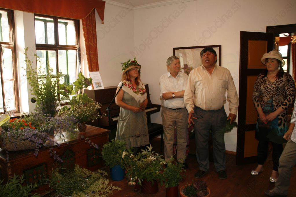 V prostorih Domačije Rus smo prisluhnili  dvema zelo zanimivima sogovornikoma,  Metki Maček zeliščarki in Janezu Gradu upokojenemu profesorju matematike. Oba sta nas vsak na svojem področju popeljala nazaj k naravi. Še pred tem smo prisluhnili milozvočnemu glasu Milana Lavrija, ki nas je z pesmijo ponesel na polja in travnike, ter  v domače loge. Najprej smo se seznanili z zelo zanimivo živalco, ki ji sicer ne dajemo takšnega mesta kot ji priteče nas je opomnil Janez Grad nato pa nadaljeval z zanimivim opisom čmrljev. Najožji sorodniki čebel v naravi opravljajo popolnoma enako funkcijo kot čebele v nekih pogledih celo bolje. Bistvena razlika med čmrlji in čebelami je, da imajo daljši rilček ter so tako edini sposobni seči do dna cveta, ki ima zelo dolg vrat (npr. trobentica). Danes so iskani opraševalci za paradižnike, paprike, rdeče jagode. Nizozemci in Belgijci so prvi začeli ustvarjati velike pokrite plantaže te zelenjave. Sprva so uporabljali čebele, pa se niso dobro izkazale, kajti njihova lastnost je, da čebelica, ki najde dobro pašo, odleti do kolegic in jih povabi na pojedino. Paradižnikov cvet pa nima nobene medičine in jim ni kaj prida teknil. Zato so uhajale s pokritih plantaž na slajšo pašo. Čmrlji pa so se izkazali za idealne opraševalce. Na tisoče in tisoče družin prodajajo po svetu v te namene. Vrsta, ki jo uporabljajo za opraševanje, je temni zemeljski čmrlj, to je družina, ki ima največ delavk, do 600. V naravi je delavk sicer manj, ker jih veliko pojedo ptice. Najhujši je srakoper, ki ga kar v letu ujame in pogoltne. Ne brani se niti čebel. V kljunu jo drži in z njo potrka po veji, da spusti strup, nato jo poje. Črmlji družinici je smrtni sovražnik vešča. Ta leže jajčeca v gnezdo in ličinke se prehranjujejo z zalego. A vendar je največji sovražnik še vedno človek z svojim odnosom do narave, zato čmrlje , ki jih je pri nas kar 35 vrst od tega 7 zajedalskih, kakor je dejal profesor kukavičjih, najdemo le na višje ležečih pašnikih. In ko smo se seznanili o skoraj vsem o čmrljih smo se podali med rožice, travice in nekateri bi dejali tudi plevel.  Že včasih , ko še ni bilo aspirina in podobnih zdravil so  ljudje poznali zdravilne rastline in zelišča, ter njihovo sposobnost pri lajšanju bolečin, poškodbah, boleznih. Če se samo spomnimo naših babic, ki so z vso naglico odšle na bližnji travnik , ali le za sosedovo hišo in nam z listom neke  rastline pomagale pri bolečini, se zavedamo pomena zeliščarstva. Čeprav se nam  izročila o uporabi rastlin morda zdijo nekoliko nenavadna, vendar najdemo v naravi mnogo rastlin, za odpravo mnogih naših težav. Tako smo se spoznavali z različnimi vrstami met, kako prijeten okus in vonj imajo, ko liste mečkaš v roki , z ušesnikom ali natreskom , močvirskim osladom , lakoto, meliso, pelinom, rumeno deteljo moškatno kaduljo.... Za vsako je Metka povedal še kako jo uporabljamo in za kaj. In če si pogledamo samo za kaj se uporablja lahko rumena detelja: proti krčnim žilam , pri boleznih ledvic, ker pospešuje izločanje seča in deluje razkužilno, uspešna je pri pomiritvi živcev in nespečnosti. Ugodno deluje na žleze. Učinkovito zdravi poškodovane stene žil, krepi stene žil, hemoroide in zdravi krčne žile. Lajša težave kot so otekanje zaradi zastajanja tekočine. Dokazali so,da zmanjšuje celo otekanje nadlakti pri ženskah, ki so jim odstranili dojko zaradi raka. Uporabljamo jo pri ranah, modricah, izpahih, zvinih, vnetjih oči in lajšanju revmatizma za zdravljenje tromboze, ker preprečuje strjevanje krvi. Za krčne žile uporabljamo čaj, izvleček in mazilo. Za pripravo čaja vzamemo 2 čajni žlički drobno narezane droge (cvetoče zeli) in 1/4 litra vroče vode, ki jo prelijemo čez drogo. Miruje naj 10 minut. Potem veste, da je bila tokratna razstava nekaj posebnega še posebno tudi zato, ker nas je obiskal sam France Prešeren in povedal, da zelo bere knjige Simona Ašiča o zdravilnih rastlinah in , da je tam veliko pametnega in koritnega zapisano. Tokrat smo druženje zaključili z pogovoru ob dobrem zeliščnem čaju in  piškotih izdelanih iz ekološke moke.