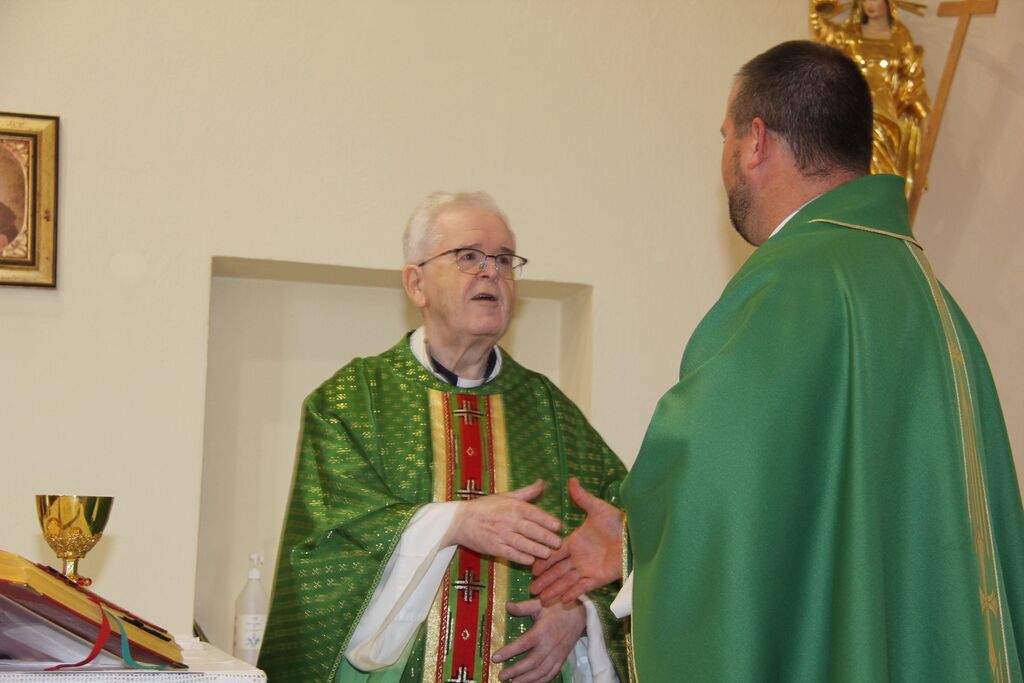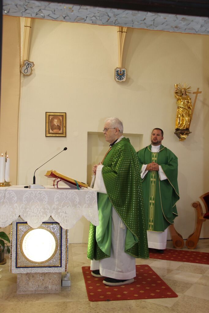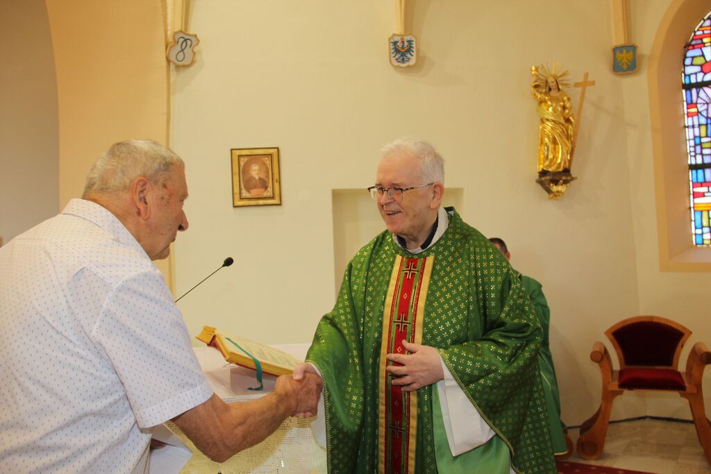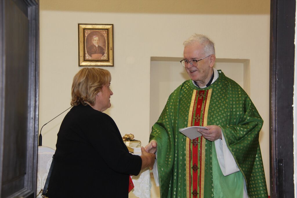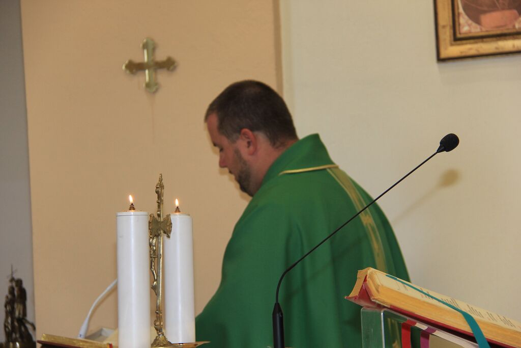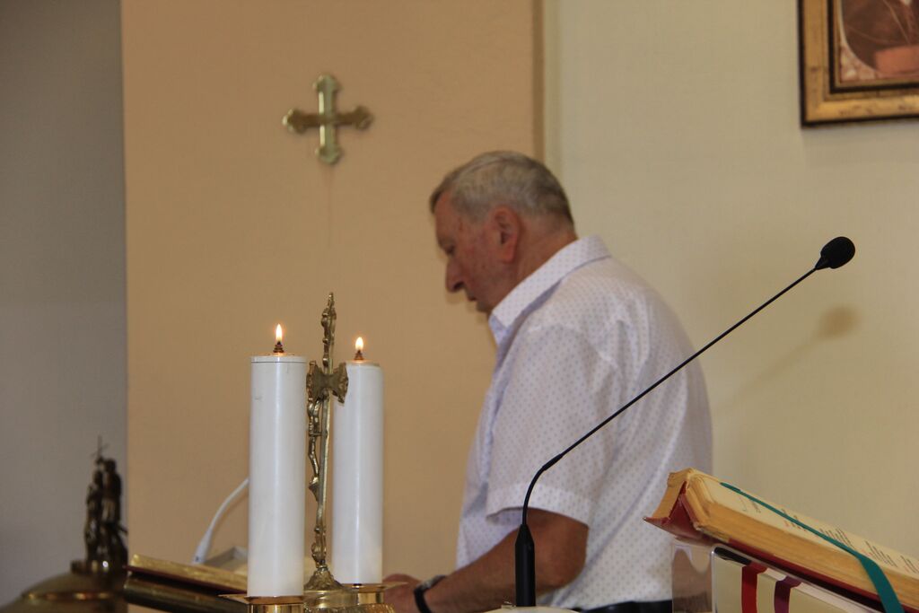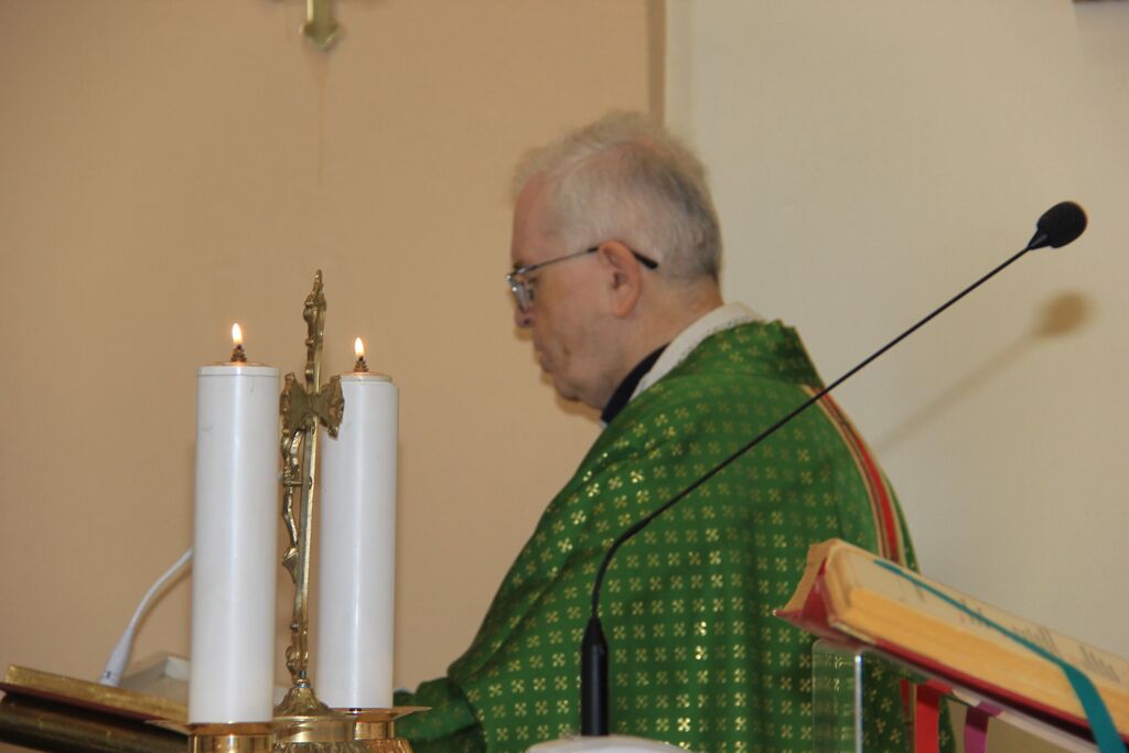 Pred 60 leti je šel v gimnazijo in malo semenišče v Pazin, v Istri, na Hrvaškem, kjer je takrat študiralo 40 slovenskih fantov, med njimi tudi on. Pred 56 leti in 6 meseci sem služil vojaški rok v Strumici, na tromeji Jugoslavija, Grčija, Bolgarija. Že 50 let in 70 dni pa opravlja duhovniško službo, to pomeni, da je letos zlatomašnik. Nato je zbrane povabil, da skupaj premišljujemo današnji evangelij in nam nato pove primer iz življenja: Revež je prosil bogataša naj mu nekaj podari, ko je v stiski. Bogataš mu je dal koš smeti. Revež je koš izpraznil, opral in ga napolnil s čudovitim cvetjem. Vrnil se je k bogatašu in mu ga dal. Bogataš se je začudil: »Zakaj si mi dal čudovito cvetje, ko sem jaz tebi dal le smeti?« - Revež je odgovoril: »Vsak da tisto, kar ima v srcu.« --- Glejte, to je Jezusov 1 pouk za nas: za naše bolne, stare, onemogle starše darujmo tudi mi ČUDOVITO CVETJE, to pomeni: našo ljubečo skrb zanje takrat, ko jo potrebujejo. Še nekaj primerov smo slišali pri tokratnem nagovoru zlatomašnika in nato je sledil ostali del svete maše skupaj s prošnjami.