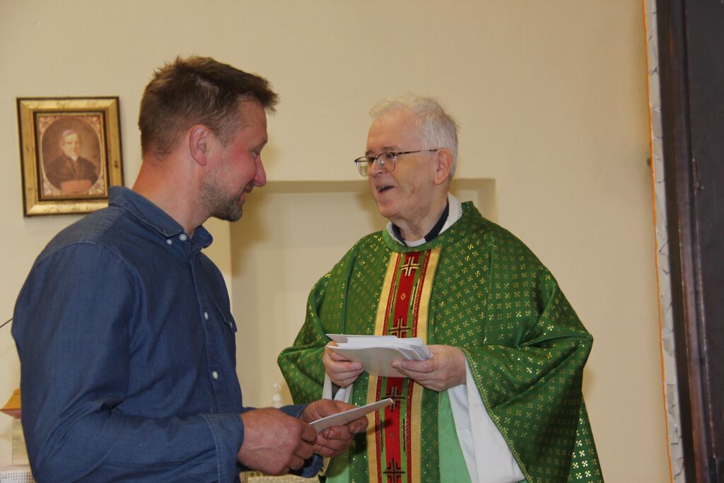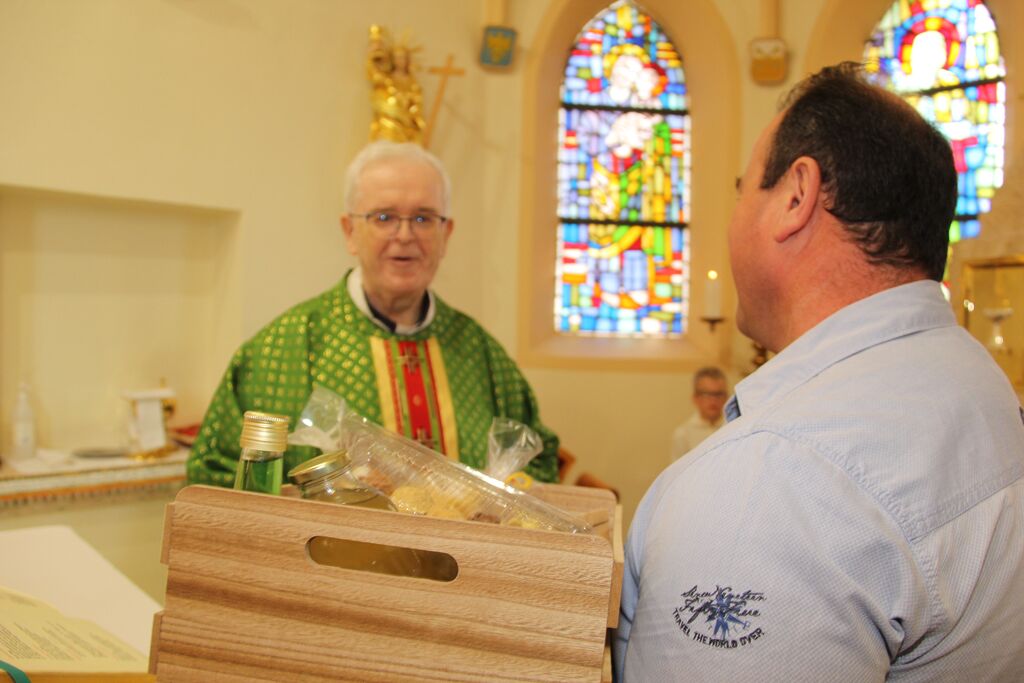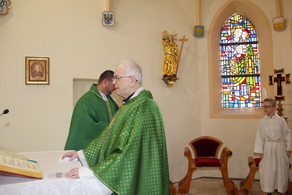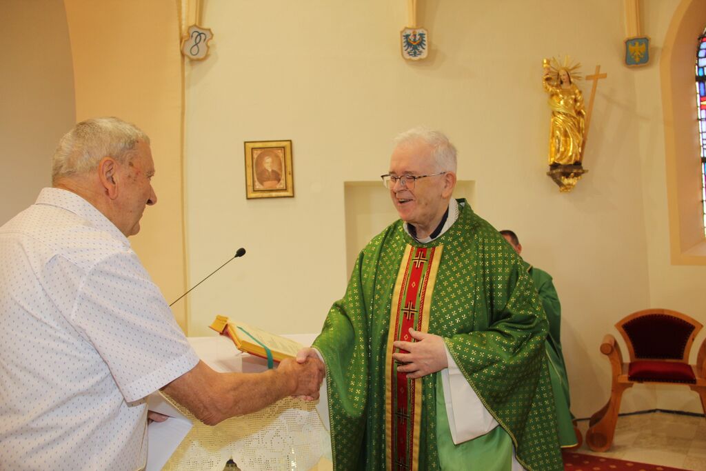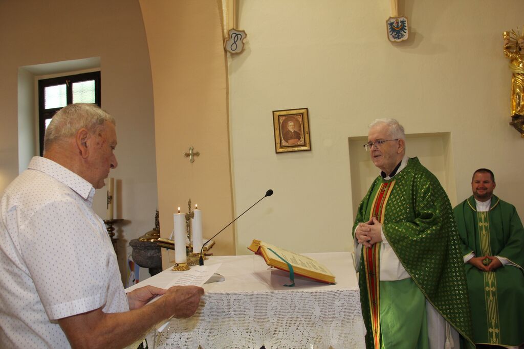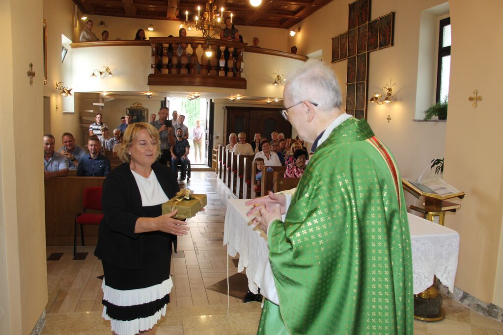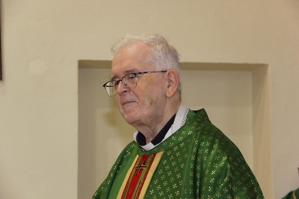 Pred 60 leti je šel v gimnazijo in malo semenišče v Pazin, v Istri, na Hrvaškem, kjer je takrat študiralo 40 slovenskih fantov, med njimi tudi on. Pred 56 leti in 6 meseci sem služil vojaški rok v Strumici, na tromeji Jugoslavija, Grčija, Bolgarija. Že 50 let in 70 dni pa opravlja duhovniško službo, to pomeni, da je letos zlatomašnik. Nato je zbrane povabil, da skupaj premišljujemo današnji evangelij in nam nato pove primer iz življenja: Revež je prosil bogataša naj mu nekaj podari, ko je v stiski. Bogataš mu je dal koš smeti. Revež je koš izpraznil, opral in ga napolnil s čudovitim cvetjem. Vrnil se je k bogatašu in mu ga dal. Bogataš se je začudil: »Zakaj si mi dal čudovito cvetje, ko sem jaz tebi dal le smeti?« - Revež je odgovoril: »Vsak da tisto, kar ima v srcu.« --- Glejte, to je Jezusov 1 pouk za nas: za naše bolne, stare, onemogle starše darujmo tudi mi ČUDOVITO CVETJE, to pomeni: našo ljubečo skrb zanje takrat, ko jo potrebujejo. Še nekaj primerov smo slišali pri tokratnem nagovoru zlatomašnika in nato je sledil ostali del svete maše skupaj s prošnjami.