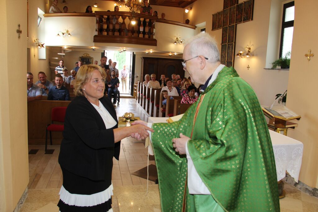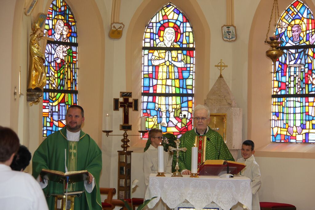 Na angelsko nedeljo, 7. septembra, je bila zato sveta maša v cerkvi sv. Marije Magdalene v Zlatem Polju še posebno slovesna, saj je duhovni pomočnik zlatomašnik Ivan Povšnar pri njej obhajal tudi zlatomašni jubilej. Za slovesnost se spodobi, da je tudi petje nekaj posebnega in že tako lepemu petju župnijskega pevskega zbora sta tokrat svoje dodala še Špela in Matevž Kink. Ob zlatomašniku je maševal tudi domači župnik Bernard Rožman, a nagovor je pripadal slavljencu. Slednji je dejal, da je pred 18 leti in 38 dnevi z veseljem prišel na Brdo in Zlato Polje opravljat službo duhovnega pomočnika in, da tudi danes z veseljem prihaja med nas kot zlatomašnik, saj je z obema župnijama še vedno povezan. Z veseljem vodi ob torkih molitveno skupino na Brdu in kadar je potrebno, rad ob nedeljah, če nima maše v Moravčah ali Pečah, priskoči na pomoč, za sv. mašo na Zlatem Polju.