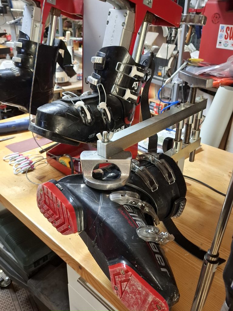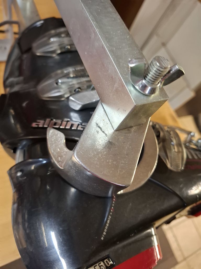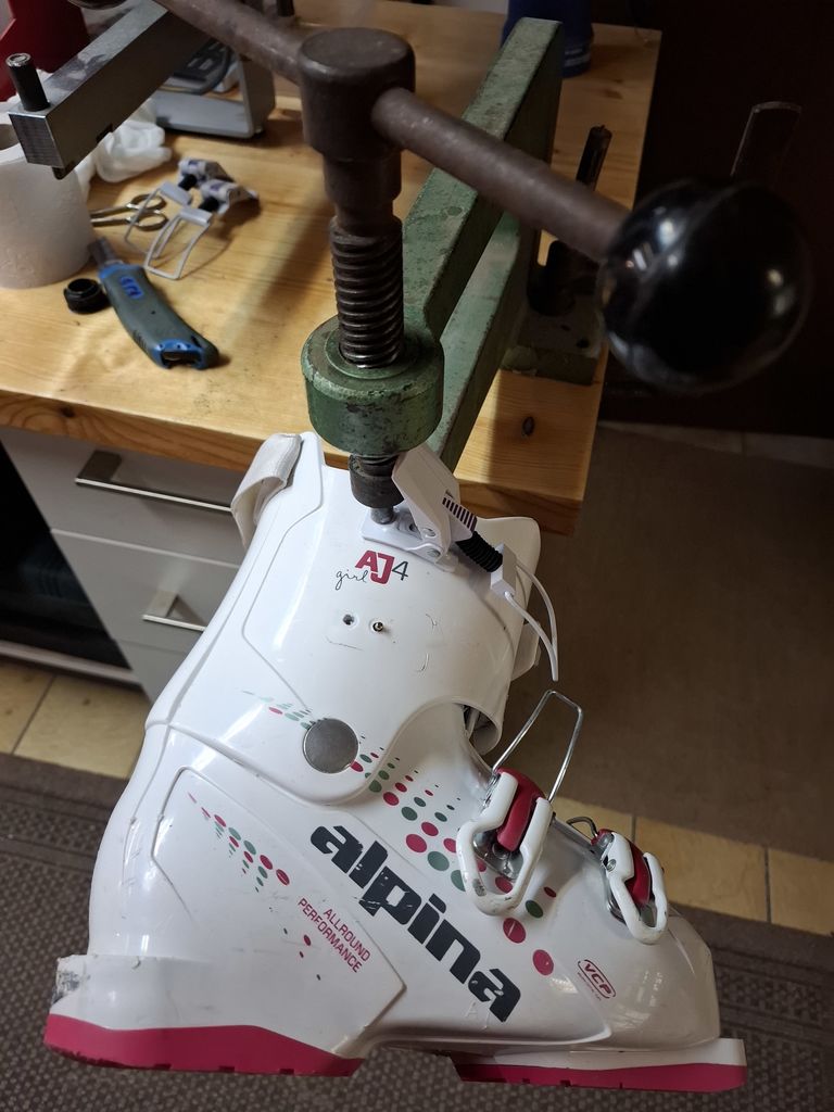 Ker nam proizvajalci, kot na primer Elan, ponujajo možnost testa smuči, se lahko, kar se tiče izbire smuči, lažje odločimo, kaj kupiti, pri smučarskih čevljih žal te možnosti nimamo. Alpina nudi široko paleto smučarskih čevljev tako moških, ženskih in otroških in vendar si je potrebno vzeti ob nakupu čas in izbrati prave, saj bomo v njih preživeli na smučišču in ob njem kar nekaj časa. Nakup opravimo popoldne, ko so naše noge že rahlo otečene in bomo ravno zato izbrali prave smučarske čevlje. Ker so številke drugačne, kot jih poznamo, si pri izbiri pomagajmo s tabelo, ki našo številko spremeni v številko smučarskega čevlja. Ob tem naj nam ne bo odveč iz školjke vzeti notranji čevelj in pomeriti samo njega, da dobimo občutek o pravilni dolžini. Potem, ko smo vse to ugotovili, si zapnimo zaponke naredimo nekaj korakov, ali le potisnemo koleno naprej in preverimo, če nam odgovarjajo tako dolžina kot širina in višina. Naj nam ne bo nerodno poprositi še za kakšen drug model, da se prepričamo, da bomo kupili smučarski čevelj s katerim bo smuka prijetna. In še nekaj, naj ne bo glavna barva čevlja, ampak udobnost le tega.