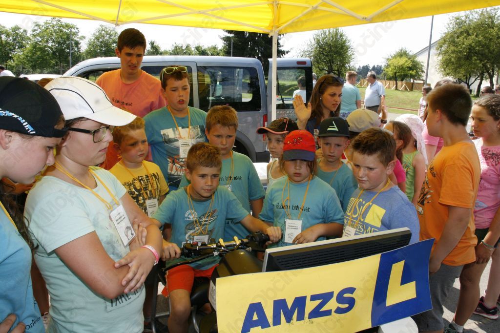 AMZS je tokrat predstavil kar vodja oratorija Marko Juteršek, ki je večkrat pomagal na akcijah, ki jih AMZS pripravlja z namenom povečane varnosti kot dijak. AMZS nam nudi širok izbor kvalitetnih storitev na enem mestu, ter omogoča mnoge ugodnosti in popuste tako v svojih poslovnih enotah, kot tudi pri poslovnih partnerjih. Spada med največje izvajalce pomoči na cesti in avto vleke v Sloveniji, saj je njihovo osnovno poslanstvo zagotavljanje naše mobilnosti! Kot največja nevladna organizacija na področju izboljšanja prometne varnosti igra zelo pomembno vlogo v Sloveniji. Vse družbe, povezane v skupini AMZS povezujejo in delujejo na področju preventive in vzgoje. Seveda ob tem ne moremo mimo njenih dejavnosti, kakor je avto-moto šport. In vendar se skupaj z društvi trudijo za povečanje varnosti v cestnem prometu, predvsem pa za osveščenosti vseh udeležencev v cestnem prometu. Po krajši predstavitvi je sledil drugi praktični del, kjer a se je potilo, kajti eni so se podali na poligon, drugi za motor, no tokrat samo simulator , tretji pa so risali, in barvali. Ker se vzgoja najmlajših v prometu začne že zelo kmalu, saj svoje prometno raziskovanje z leti nadaljujejo kot pešci in kolesarji so pravočasne, strokovne in pedagoško vsebine ter izkušnje, še kako dobrodošle za varno udeležbo otrok v prometu. Otroci pridobivajo znanje od staršev, v vrtcih, šolah in seveda ob vsakodnevnem vzoru odraslih v prometu. AMZS tako najmlajšim otrokom prometno varnostne vsebine približa s pobarvanko v kateri nastopa zmajček, ki se spoznava z težavami v prometu. Malce starejši so se podali na simulator, najstarejši pa na poligon, ki ga je tokrat s kolesom prvi prevozil Jože Cerar lanskoletni dobitnik kristalne čelade za dosežke v moto športu- starodobni motociklizem, sicer pa predsednik AMD Lukovica. Tokrat se je najprej lotil postavljati progo, nato je bil njen testni voznik in sodnik, na koncu pa je še podelil nagrade, ki jih je prispevala AMZS. Prvo mesto je tokrat osvojil Kristjan Zore, drugo Andrej Pavlič in tretje Eva Pestotnik, ki je dobila še nagrado kot edino dekle, ki je zbralo dovolj korajže in znanja. Če je z predstavitvijo AMZS in AMD Lukovica uspelo tako animatorjem kakor predstavnikom AMZS in AMD Lukovica , da se bodo otroci sedaj malce bolj odgovorno vedli v cestnem prometu je že bil namen tokratnega druženja dosežen.