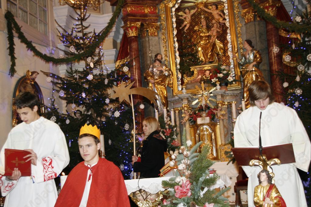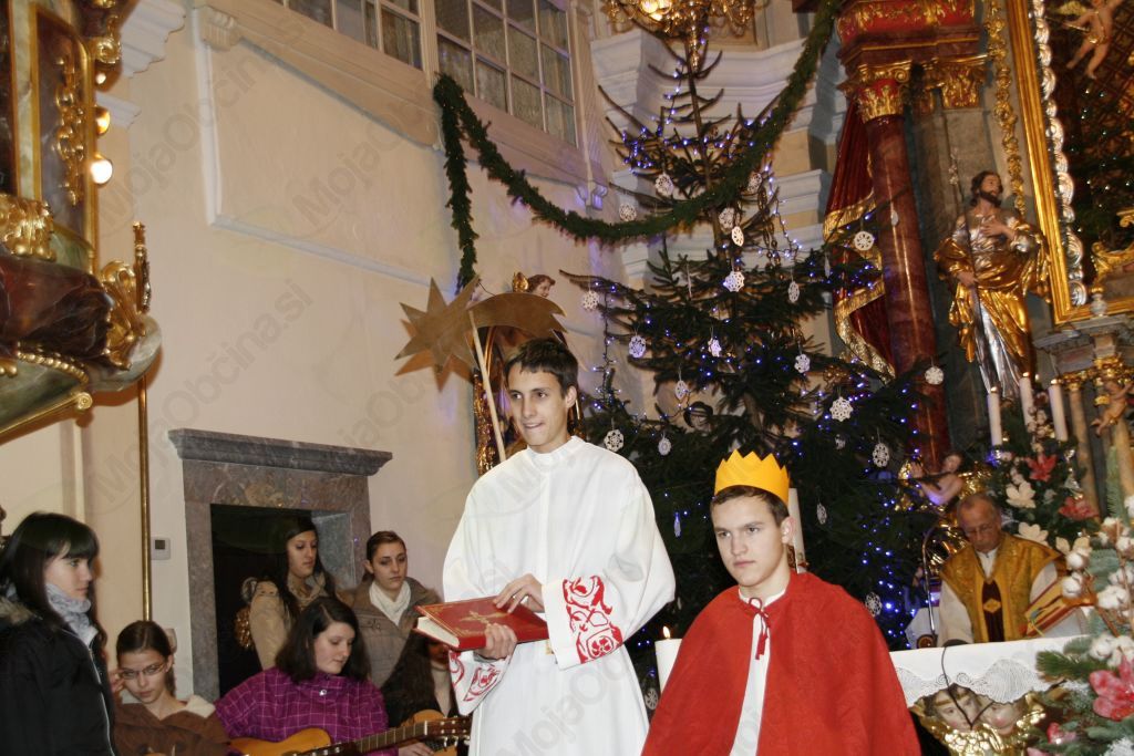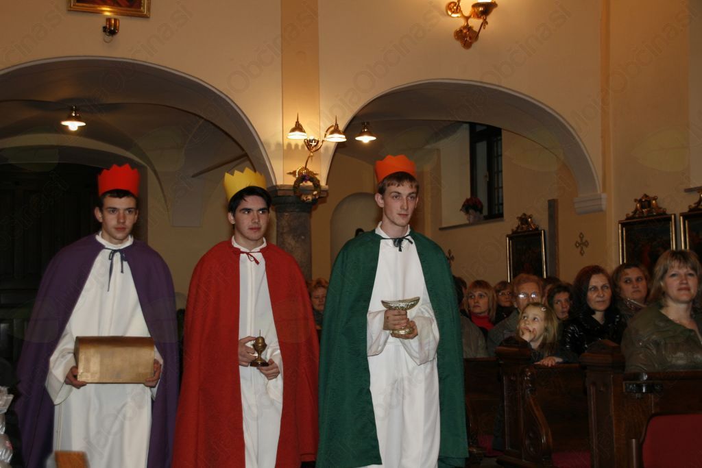 V soboto 5. januarja so k sveti maši v cerkev Marijinega vnebovzete na Brdu prišli trikraljevski koledniki, ki so nazadnje obiskali vse domove v  župniji v času od 28. 12. 2003 do 04. 01. 2004 torej pred desetimi leti. Tudi letos se niso odpravili po domovih, ampak so nam v cerkvi  spregovorili o namenu njihovega obiska. Ob pomoči animatorjev, ki se pripravljajo za prvi oratorij v župniji v letu vere smo tako spoznavali ob pesmi in besedi pot treh modrih; in glej, zvezda, ki so jo videli vziti, je šla pred njimi, dokler ni obstala nad krajem, kjer je bilo dete. Ko so zagledali zvezdo, so se silno razveselili. Stopili so v hišo in zagledali dete z Marijo, njegovo materjo. Padli so predenj in ga počastili. Odprli so svoje zaklade in mu darovali zlata, kadila in mire. In ker so bili v sanjah opomnjeni, naj ne hodijo nazaj k Herodu, so se po drugi poti vrnili v svojo deželo vse to in še več je bilo tokrat slišati namesto običajnega nagovora duhovnika. Dar tistega dne je bil namenjen za pomoč našim misijonarjem po svetu in tudi adventna akcija Otroci za otroke bo prinesla pomoč otrokom širom sveta in še vedno imamo čas, da dodamo svoj dar, kajti prihranki, ki jih v teh dneh podarijo otroci za svoje vrstnike, revne otroke po svetu, pomagajo zgraditi otroške vrtce, šole in dispanzerje v deželah v razvoju in tudi naš dar bo vedno dobrodošel.