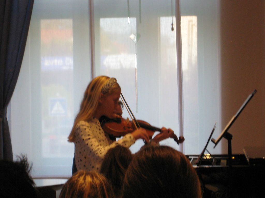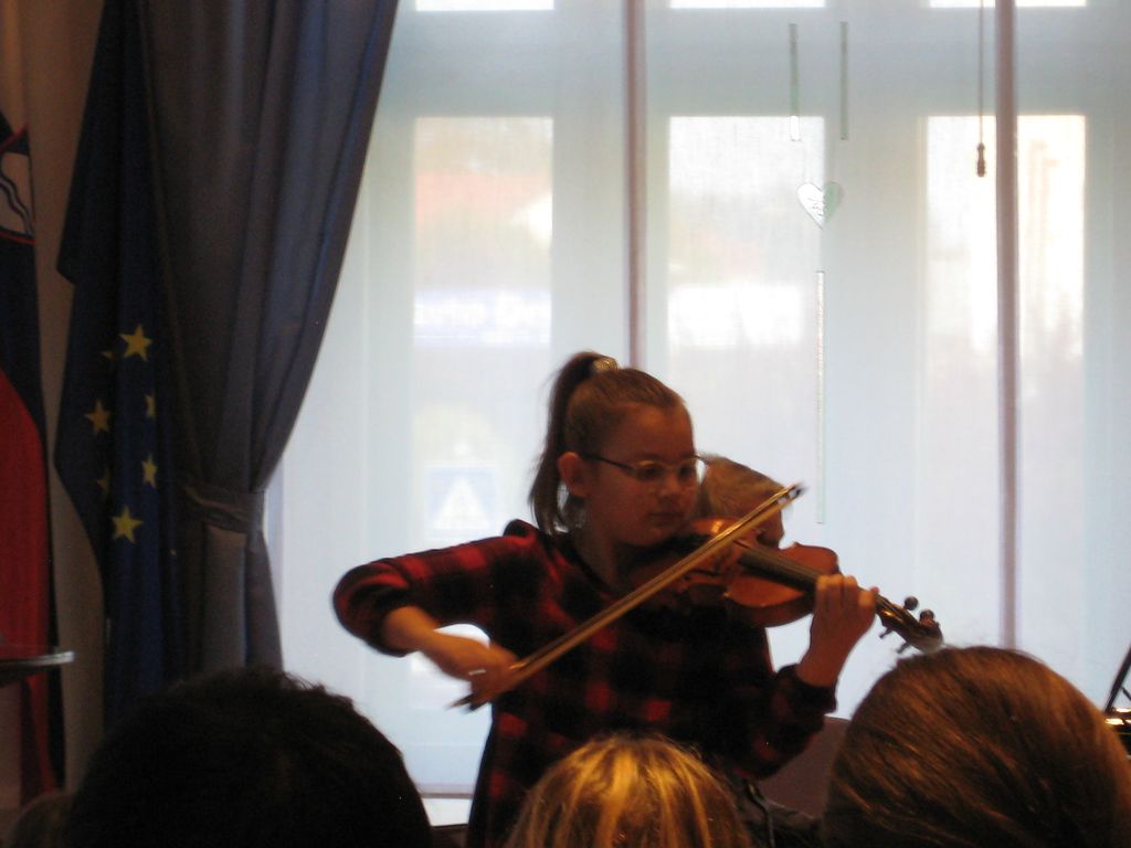 »Danes tu, jutri tam« bi lahko zapisali in prav je tako, da prisluhnemo mladim violinistom v matični hiši in enkrat na podružnični. Tako smo tokrat prisluhnili mladim violinistkam in violinistu v Domžalah tudi zato, da se učenci spoznajo med seboj. Violinist in violinistke iz GŠ Domžale in Brda so nam tako v petek, 14. oktobra, zaigrali v dvorani Acija Bertonclja v Domžalah. Prisluhnili smo nekaj violinistkam iz višjih razredov in tudi tistim, ki so malo manj vajeni nastopov, in sicer tistim iz pripravnice. In kljub mladosti in kakor bi dejali »malo kilometrine«, je nastop izredno uspel enim in drugim, kar se je videlo tudi na obrazih staršev in profesorice Ane. Tako smo na začetku prisluhnili kvintetu violin nato pa so svoje zaigrale Viktorija, Brina, Patricija, še ena Viktorija, Larisa in Patricija, Neža, Iza in na kitari Ota, Karolina, Ema, Ajda in Ivona. Da violina ni domena nežnejšega spola nam je dokazal Jakob, ki je zaigral Cauperinijevo Sicilienne. Poleg spremljave s kitaro so druge spremljali na klavirju Ana Novak, Pandelina Atanasova in Tomaž Pirnat. Po skoraj dveh mesecih učenja je bil to prvi nastop in sedaj pride učenje ter vaje in nato srečanje na Brdu. Slutiti je, da bo Ana Novak še pred novim letom pripravila čudovit nastop mladih umetnikov na violini.