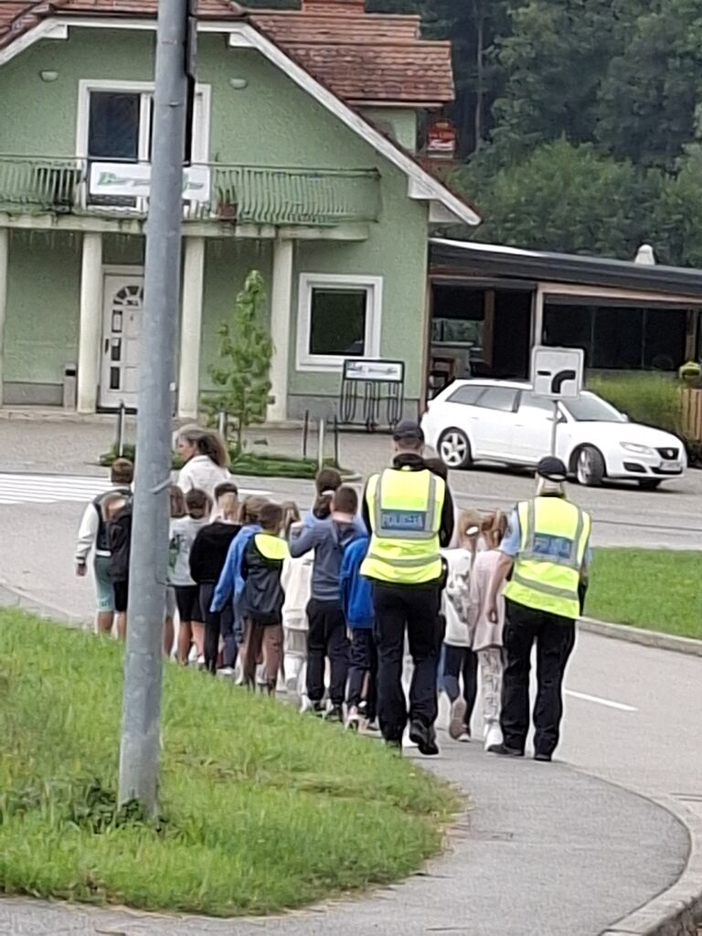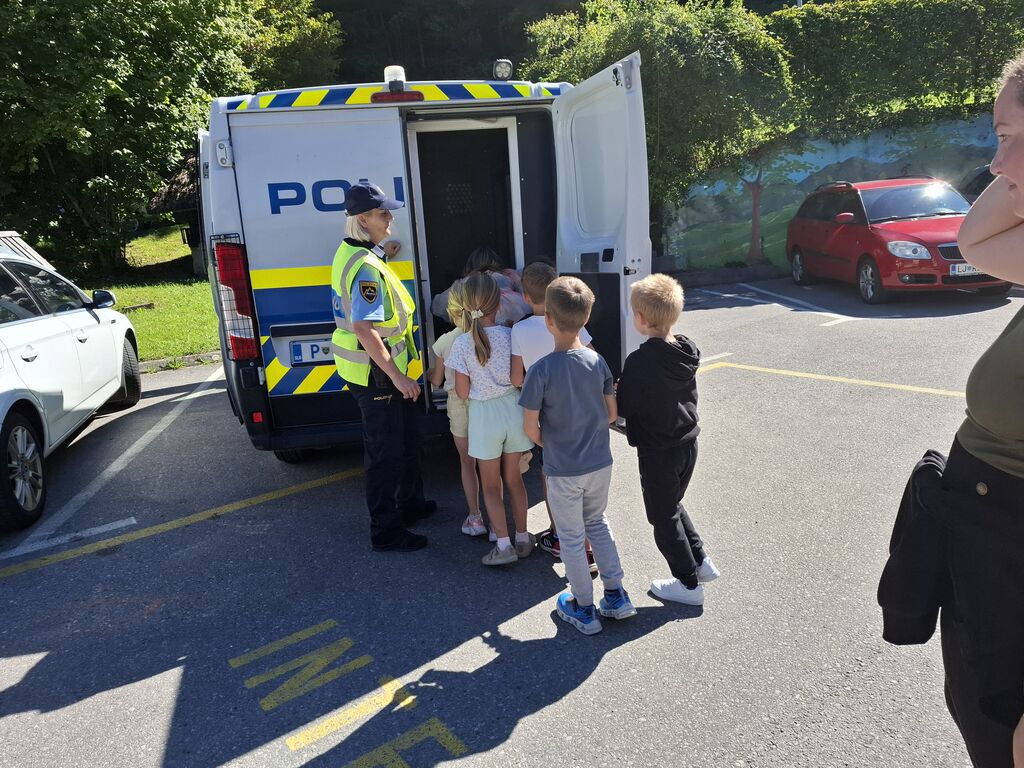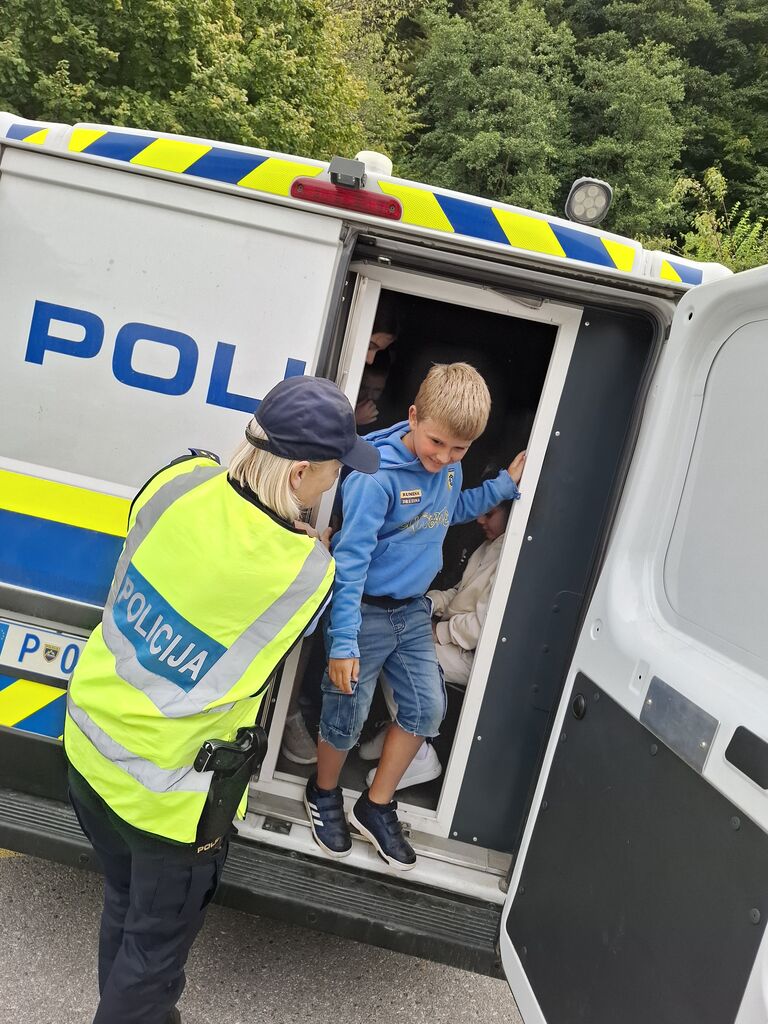 Beseda, dve sta bili namenjeni tudi učencem in učenkam, ki v tem šolskem letu opravljajo kolesarski izpit, tudi o tem, da bistro glavo varuje čelada. Ker so veliko vedeli in bili na sprehodu previdni in pozorni so za nagrado dobili ogled policijskega vozila. A ne le od zunaj, ampak tudi od znotraj in to spredaj, na sredini in zadaj ter še opozorilne luči sta jim prižgala. Ker so lepo vzgojeni in znajo ceniti njuno delo in delo, ki ga opravljata na PP Domžale so se jima lepo zahvalili, da sta jih obiskala ter jima pomahali v slovo zadovoljni, ker so izvedeli nekaj več o varnosti v prometu, na spletu in še in še.