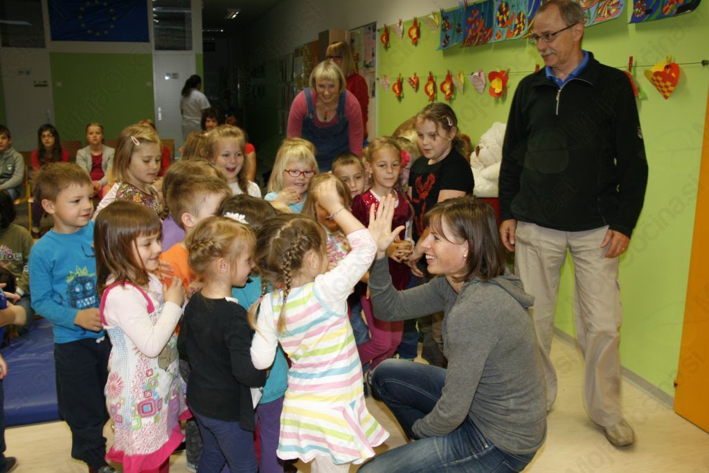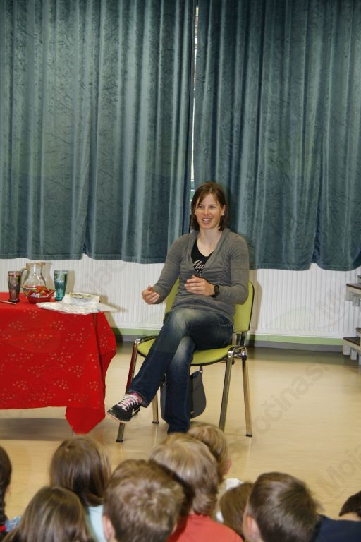 Tega, da je hodila na podružnično šolo so se najbolj razveselili učenci podružnične šole Janko Kersnik v Krašnji, katerih gostja je bila v petek 22. maja. Zgledno sodelovanje podružnične šole in Športnega društva  je na šolo ob pomoči Marjana Štruklja pripeljalo že kar nekaj zvenečih športnih imen, tokrat Vesno Fabjan dobitnico bronaste kolajne v Sočiju. In tako so tokrat učenci izvedeli veliko o teku na smučeh, smučkah, mažah, pripravah in začetkih njene športne poti. Čeprav zveni sila preprosto njen začetek kariere izgleda nekako takole Ker je bilo veliko bolj zanimivo v družbi na snegu, kakor pri knjigah, se je odločila in poskusila, pa je šlo. Največ zaslug za njeno športno pot ima zagotovo brat, ki jo je navdušil, pa tudi starši, ki ji stojijo ob strani. Začetki so bili težki tako zaradi smuči kakor ostalega, sedaj pa zanjo in sotekmovalke skrbi celo moštvo, tako trenerjev kakor ostalih. Poleg glavnega trenerja je tu še kondicijski, v zadnjem času še za gimnastiko in mnogi drugi. Pogovor je stekel o različnih tehnikah teka tako pozimi kakor poleti, o opremi in o njeni vzornici, Stefanii Belmondo. Beseda je tekla tudi o štirinožnih prijateljih, ki jih zaradi odsotnosti od doma žal ne more imeti. A nismo ostali samo ob njeni predstavitvi , ampak sta se zbranim predstavili tudi  Katja Tič iz 5.c, ki je  gimnastičarka in Lucija Ribič iz 4.c, ki nam je predstavila  košarko. Na številna vprašanja med katerimi tudi, koliko medalj ima in kaj je, je z veseljem odgovarjala. Slišali pa smo tudi nekaj prigod z podružnične šole. Posebno zanimiva je bila tista o plonkanju, za katero se je kasneje ugotovilo, da ji je v veliko pomoč pri štartu. Saj veste očke begajo sem ter tja v sosedov zvezek , na štartu pa sem ter tja, kaj delajo ostale tekmovalke. Na koncu še zahval  in v spomin na srečanje pristna domača darila, ki ji bodo še kako prav prišli, saj že kaj kmalu odhaja na morje.