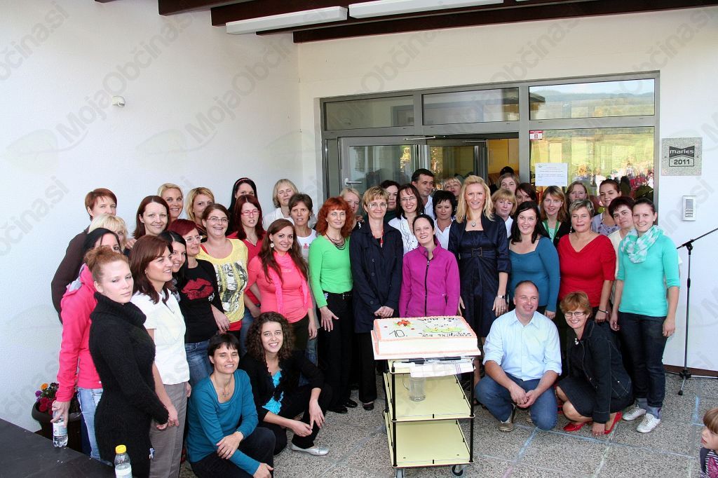 Saša Vegri je zapisala: »Vrtec je hiša, kamor hodi Miša, v njej so tudi Nejci, Drejci, Nine, Brede in najlepše petletne sosede«, a ni vsak vrtek kot naš, saj v našega vsako jutro prek lesenega mostička že deset let vstopamo v svet otrok, poln domišljije, radosti in enkratnih doživetij. Čeprav je kdaj tudi otožen, je največkrat vesel in radostno razpoložen, in takšen je bil tudi v soboto, 6. oktobra, ko so otroci skupaj s starši praznovali njegovo 10. obletnico.