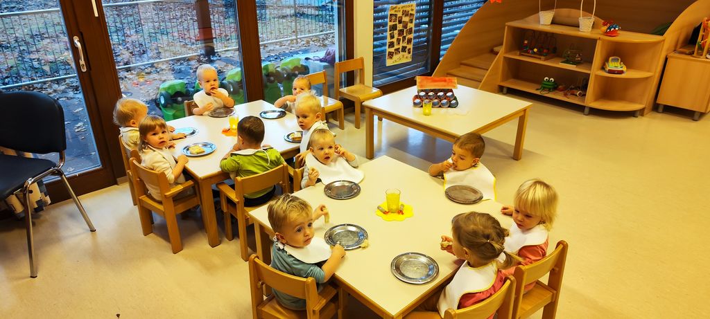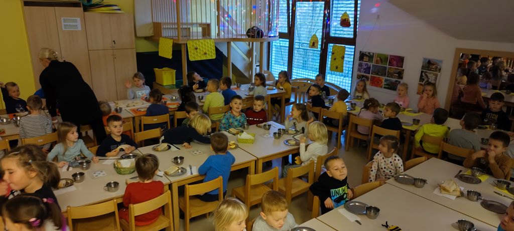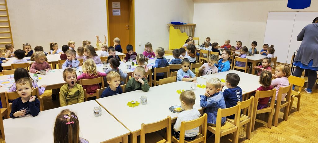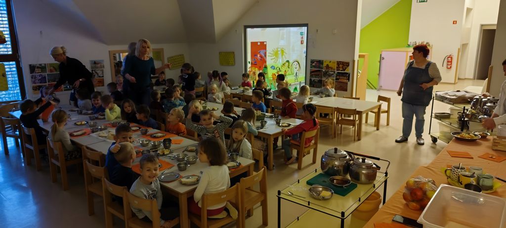 Ta dan posebej obeležimo tudi pri nas v vrtcu Medo, saj za otroke pripravimo zajtrk malo drugače. Skupine se združujejo in otroci in strokovne delavke skupaj pozajtrkujejo dobrote iz lokalne pridelave, domač kruh iz krušne peči, domače maslo, mleko in med ter jabolka.