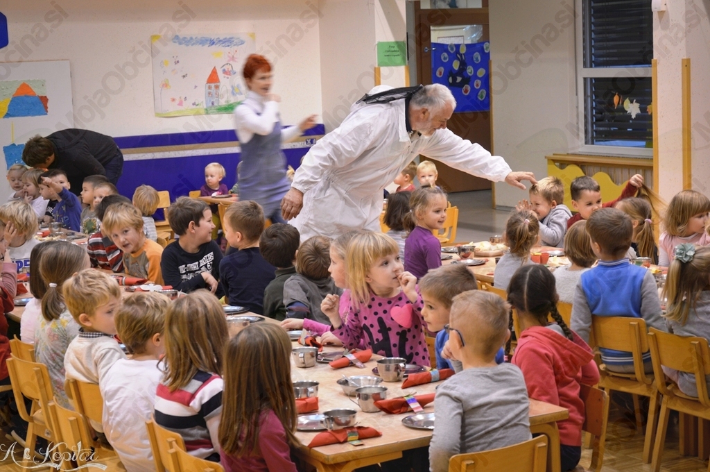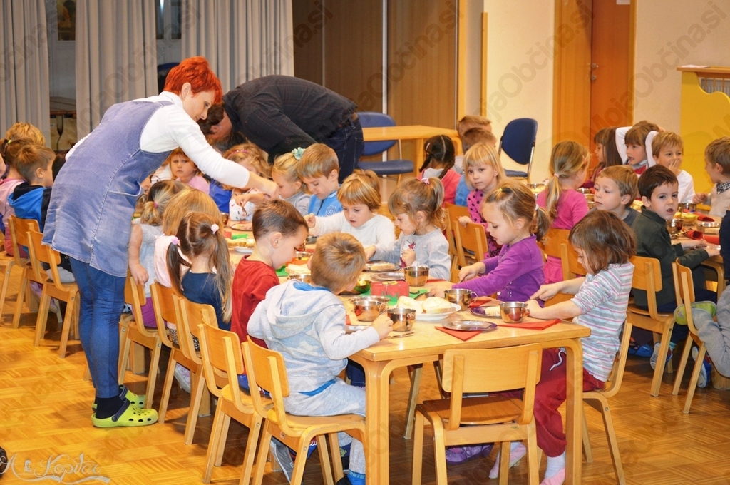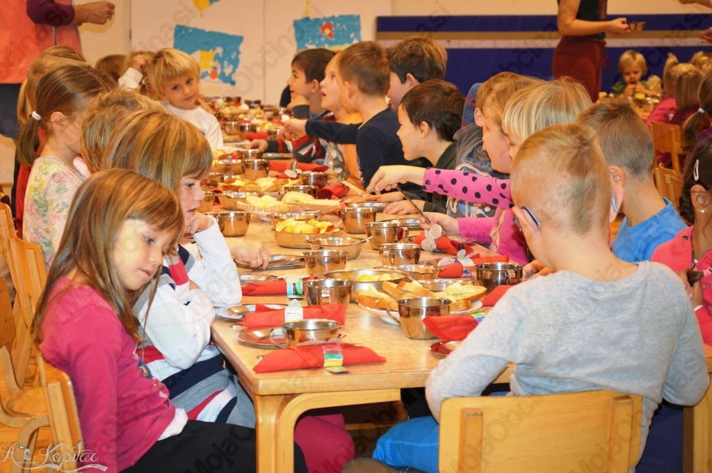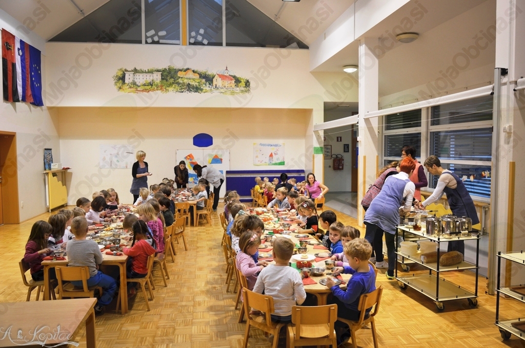 Tudi sicer v vrtcu in osnovni šoli veliko pozornosti namenjajo prehrani, saj otrokom večinoma strežejo jedi, ki so za njih najprimernejše. Tako so na jedilniku predvsem jedi, ki so blizu tradicionalnemu slovenskemu zajtrku. S tem mislimo na kruh, ki je narejen iz ržene, koruzne, črne ali pa ržene moke, mlečni zdrob, močnik, kašo, polento, kosmiče in podobno. Tudi pri ostalih obrokih se naslanjajo na slovensko kuhinjo in naravne sestavine, ki so blizu naši, slovenski kuhinji.